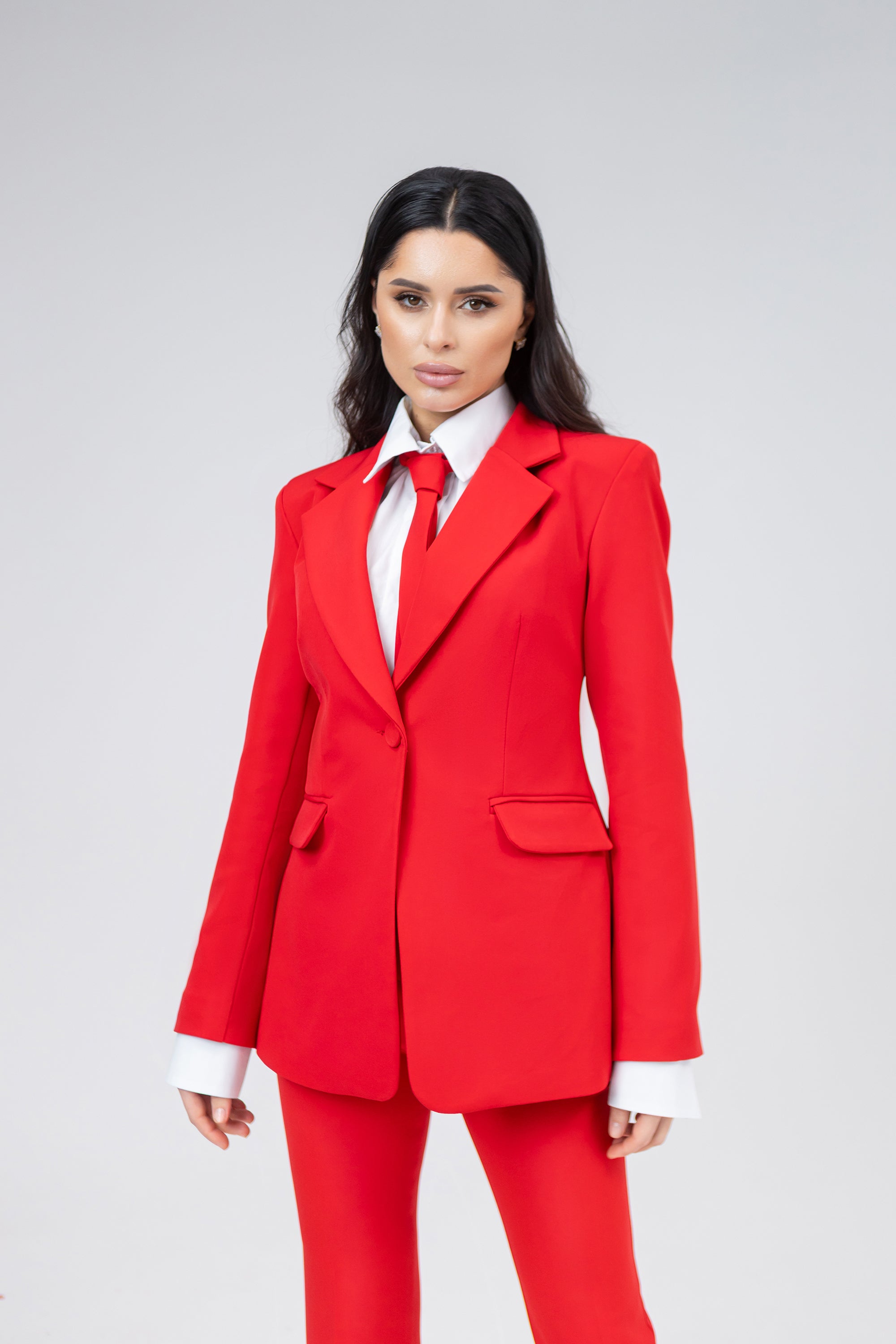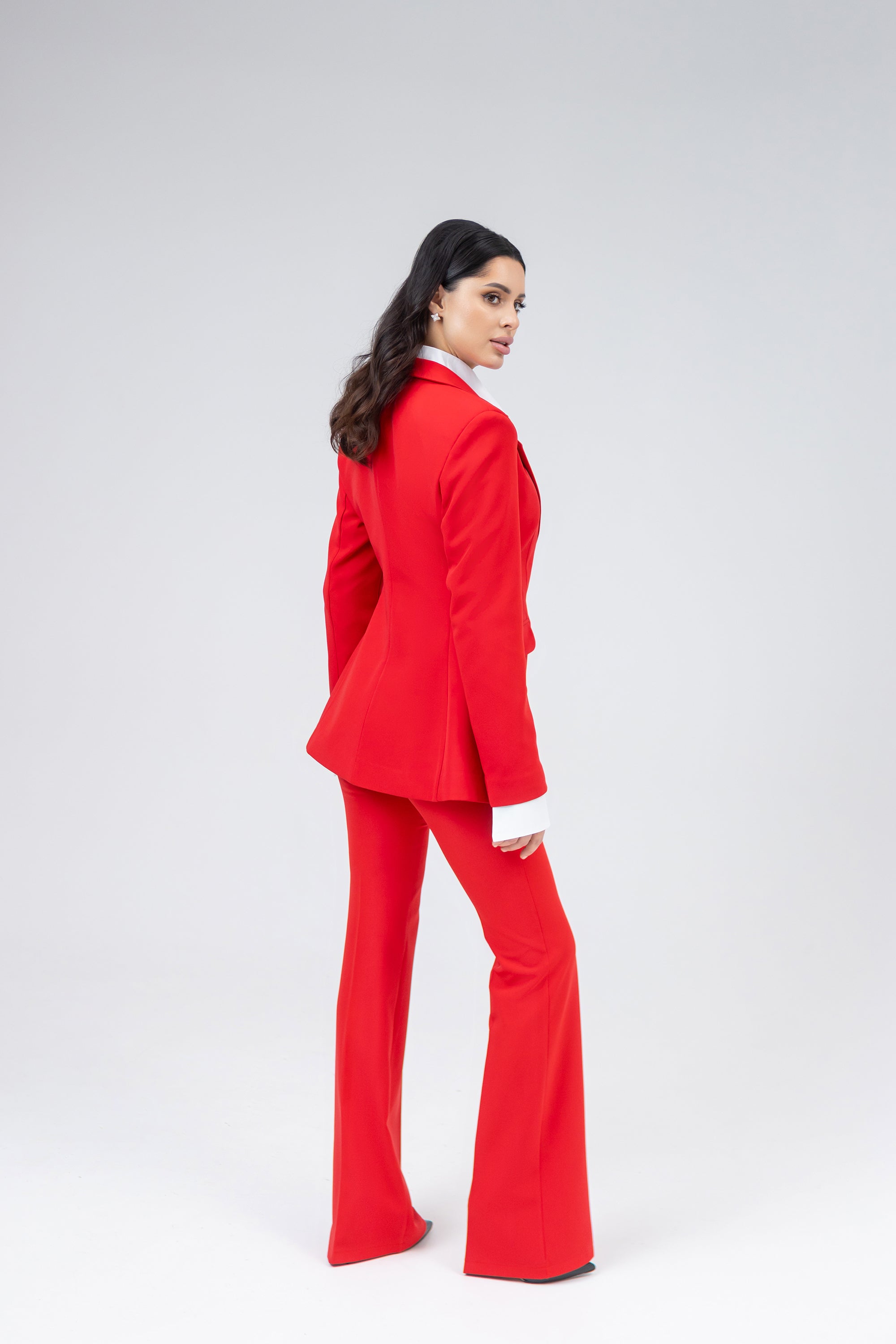 Liora Bordeaux Tailored Peplum-Waist Suit 2-Piece