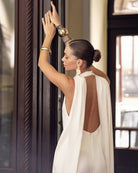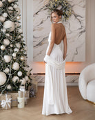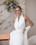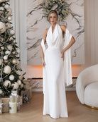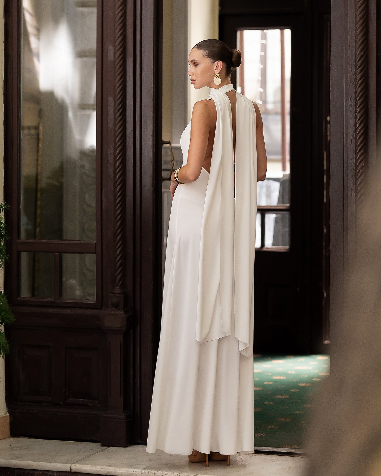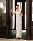 Céline White Satin Drape Halter-Neck Backless Maxi Dress