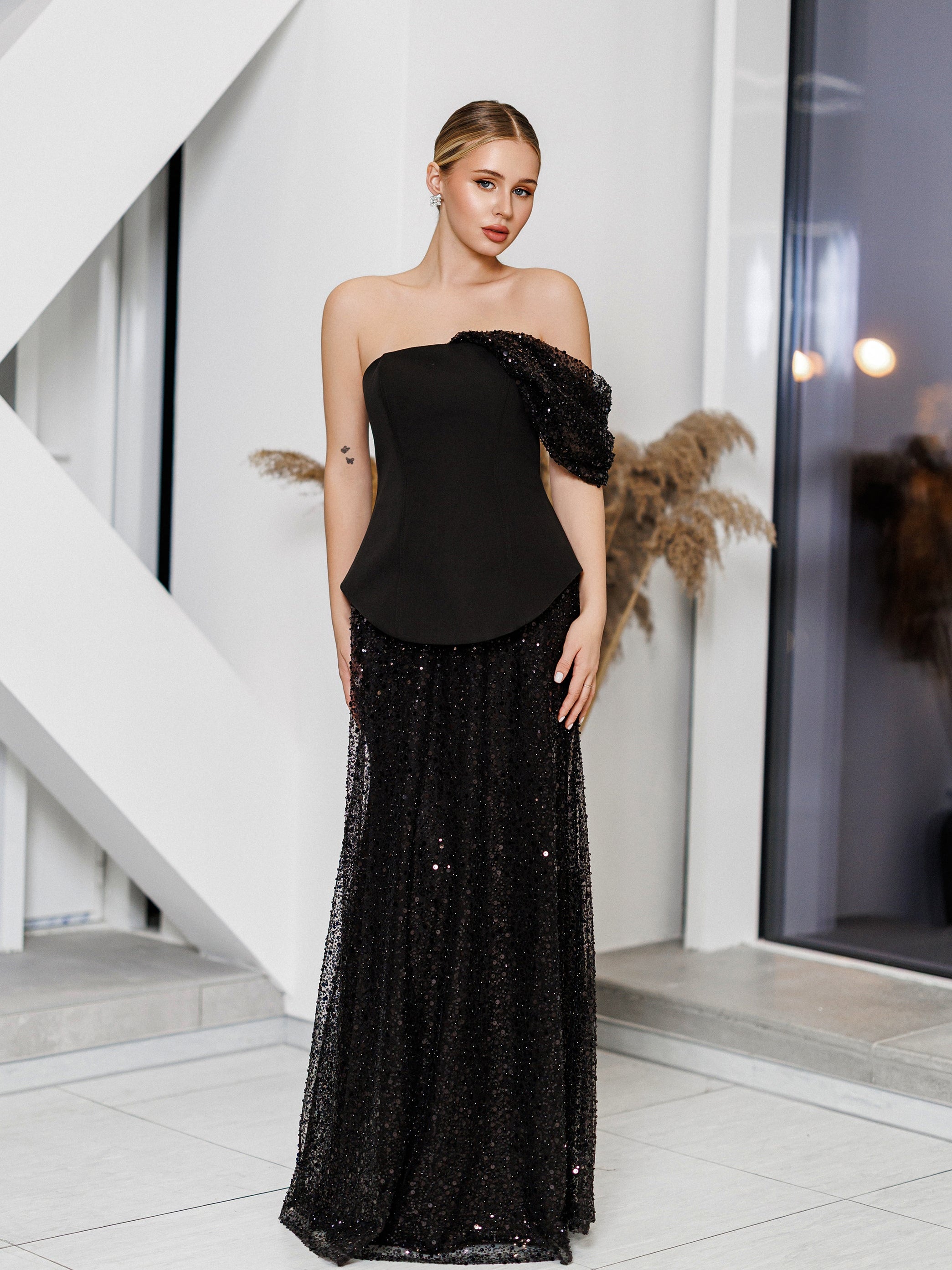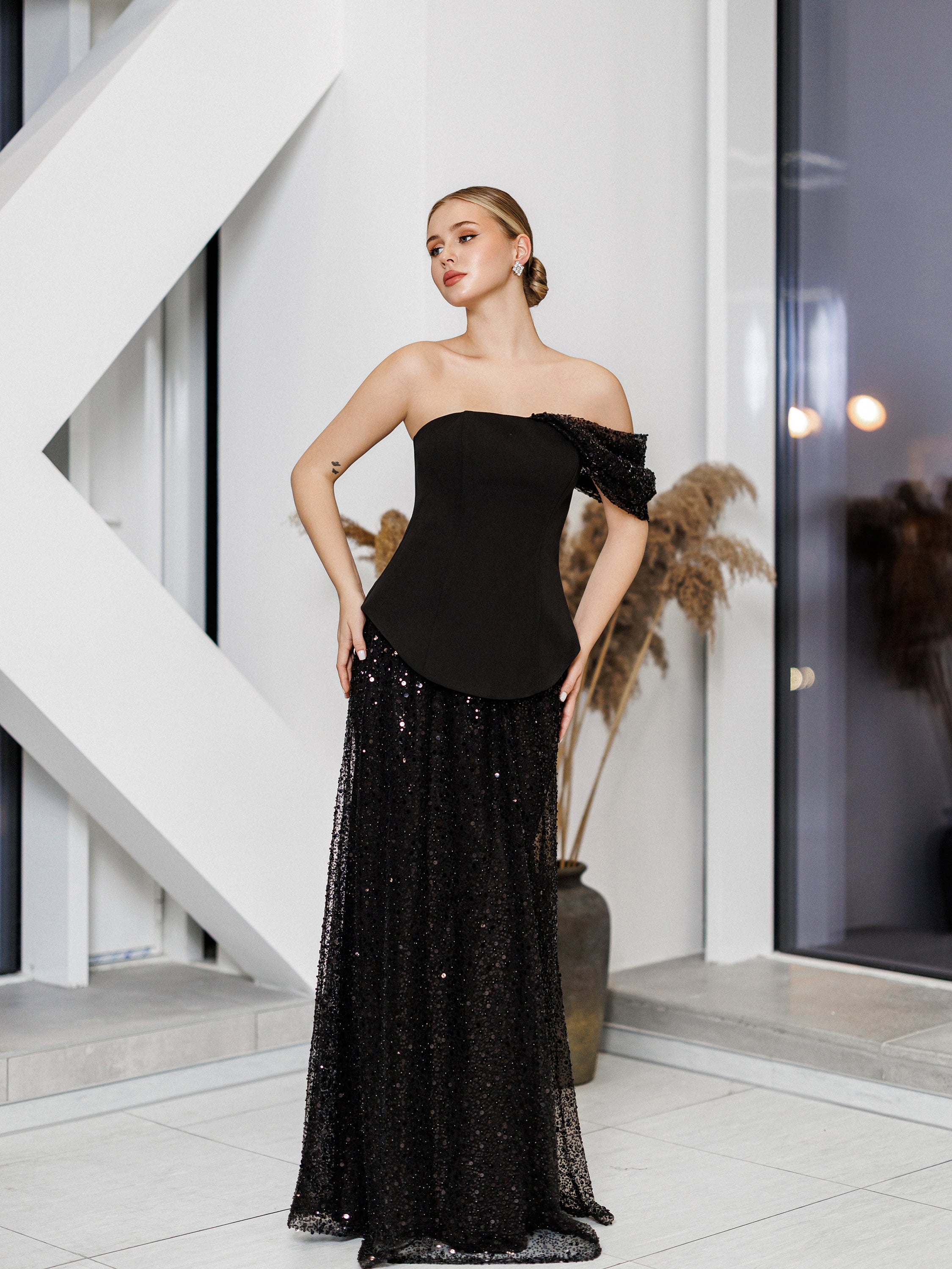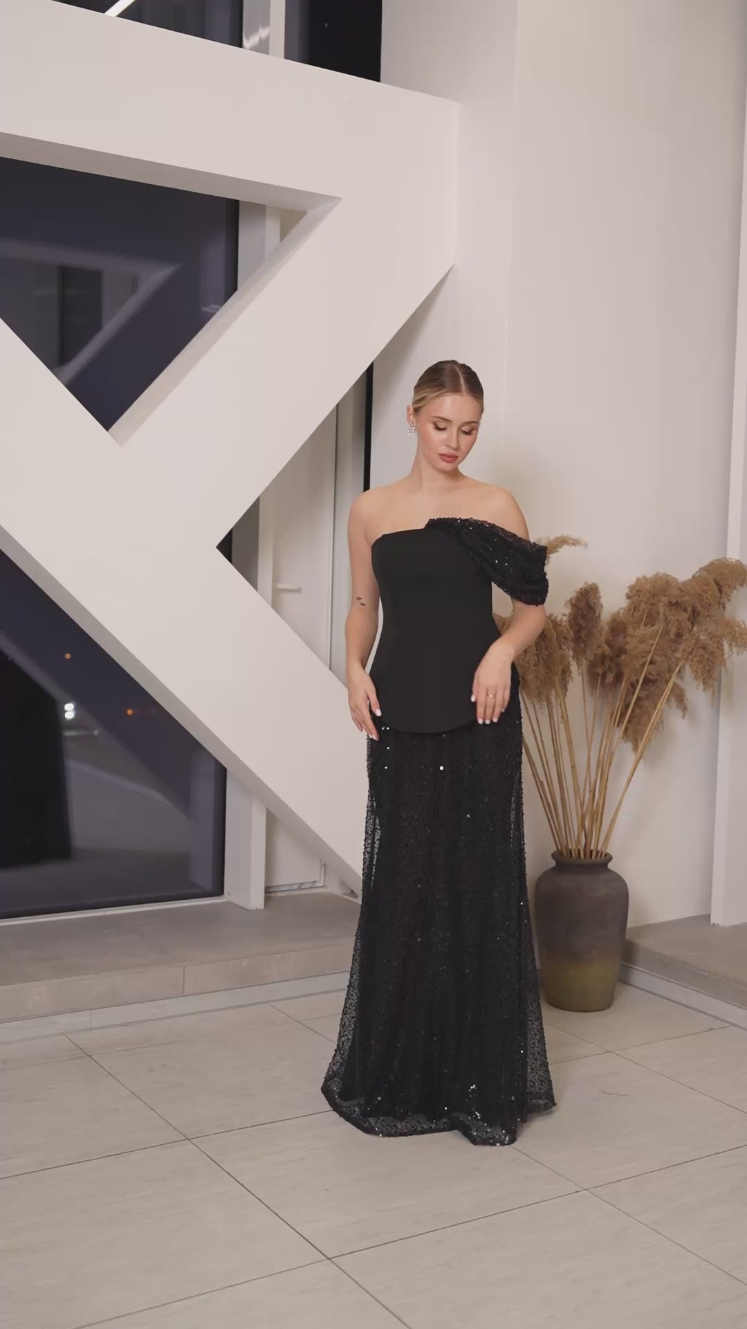 Julie Black Sequin Off-Shoulder Maxi Dress