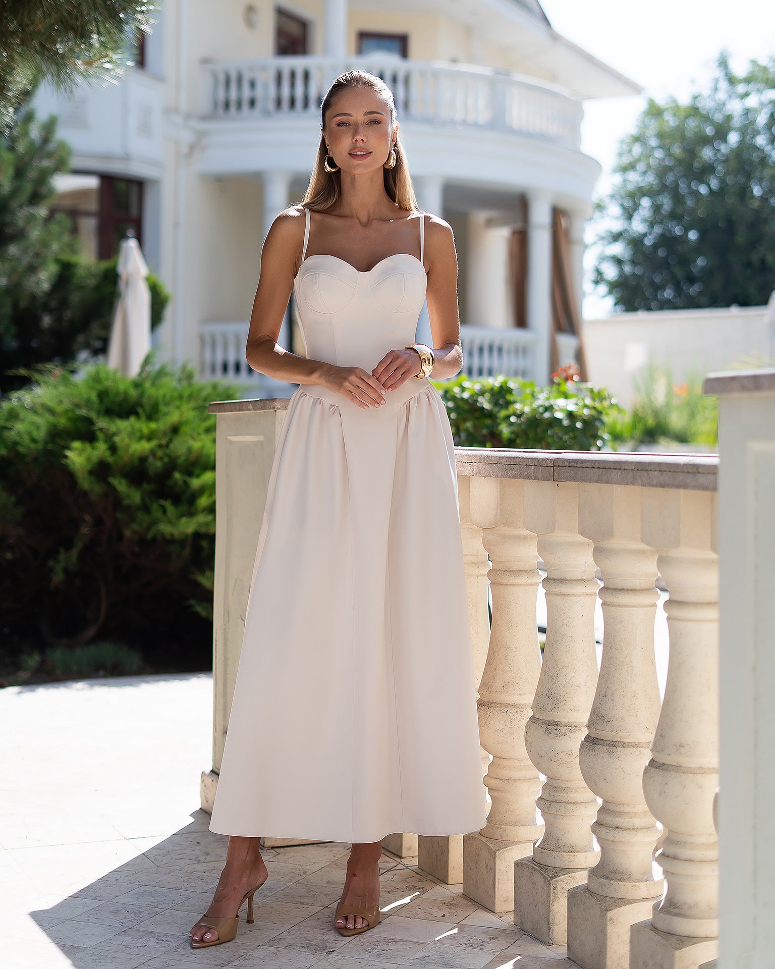 Monica White Strappy Sweetheart Neckline Midi Dress