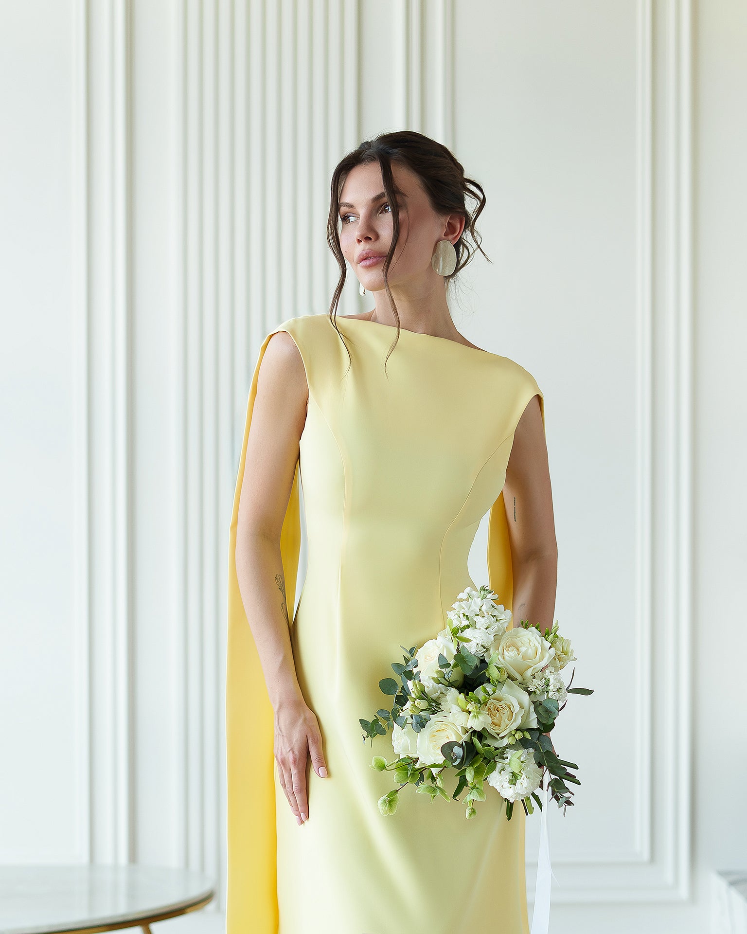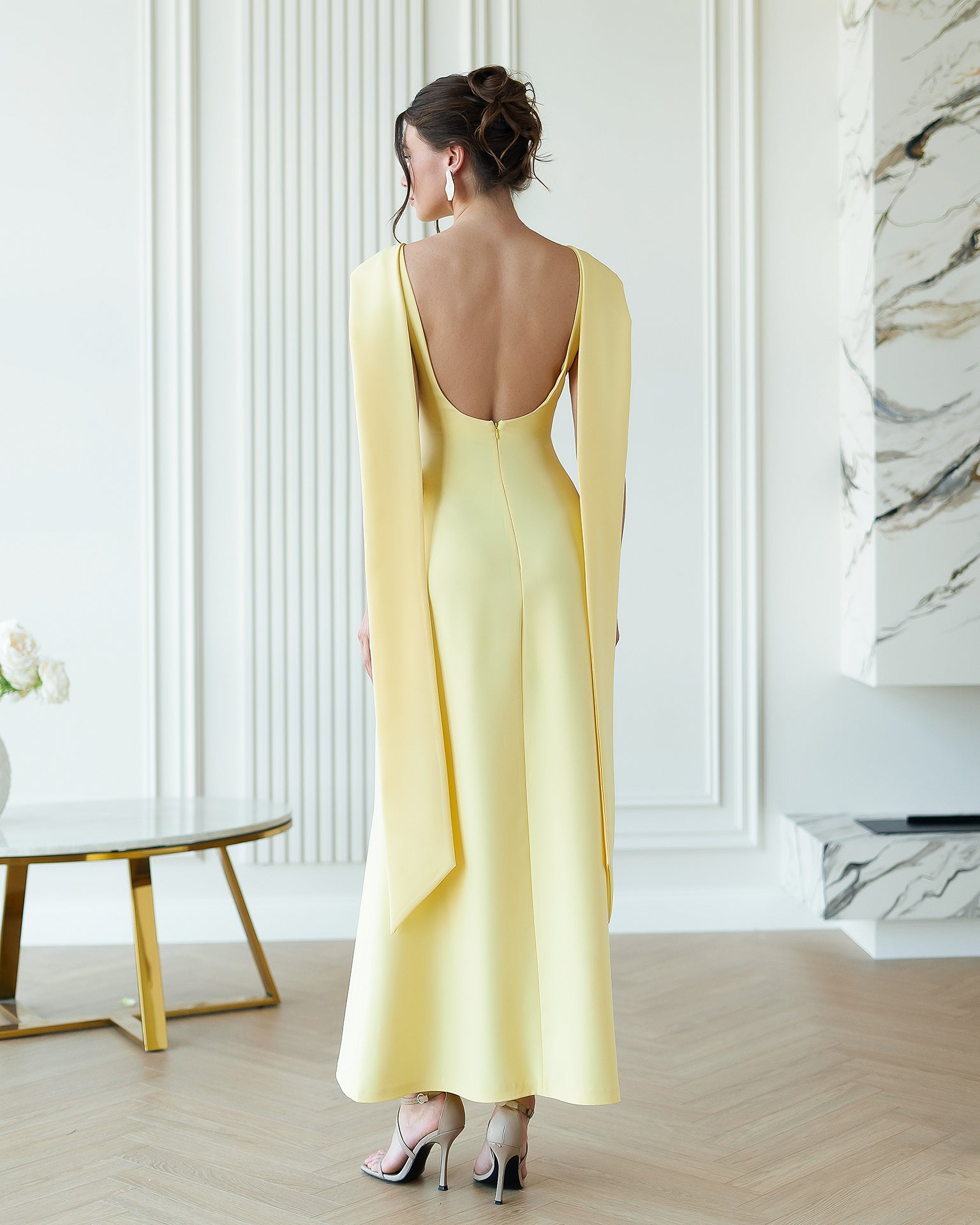 Yellow Boat-Neck Sleeveless Open-Back Maxi Dress