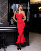 Bella Red Strapless Ruffled-Hem Mermaid Midi Dress