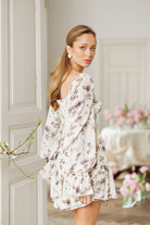 Black Floral-Print Sweetheart Puff Sleeve Mini Dress