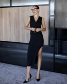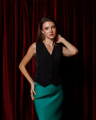 Gloria Black V-Neck Button-Front Vest
