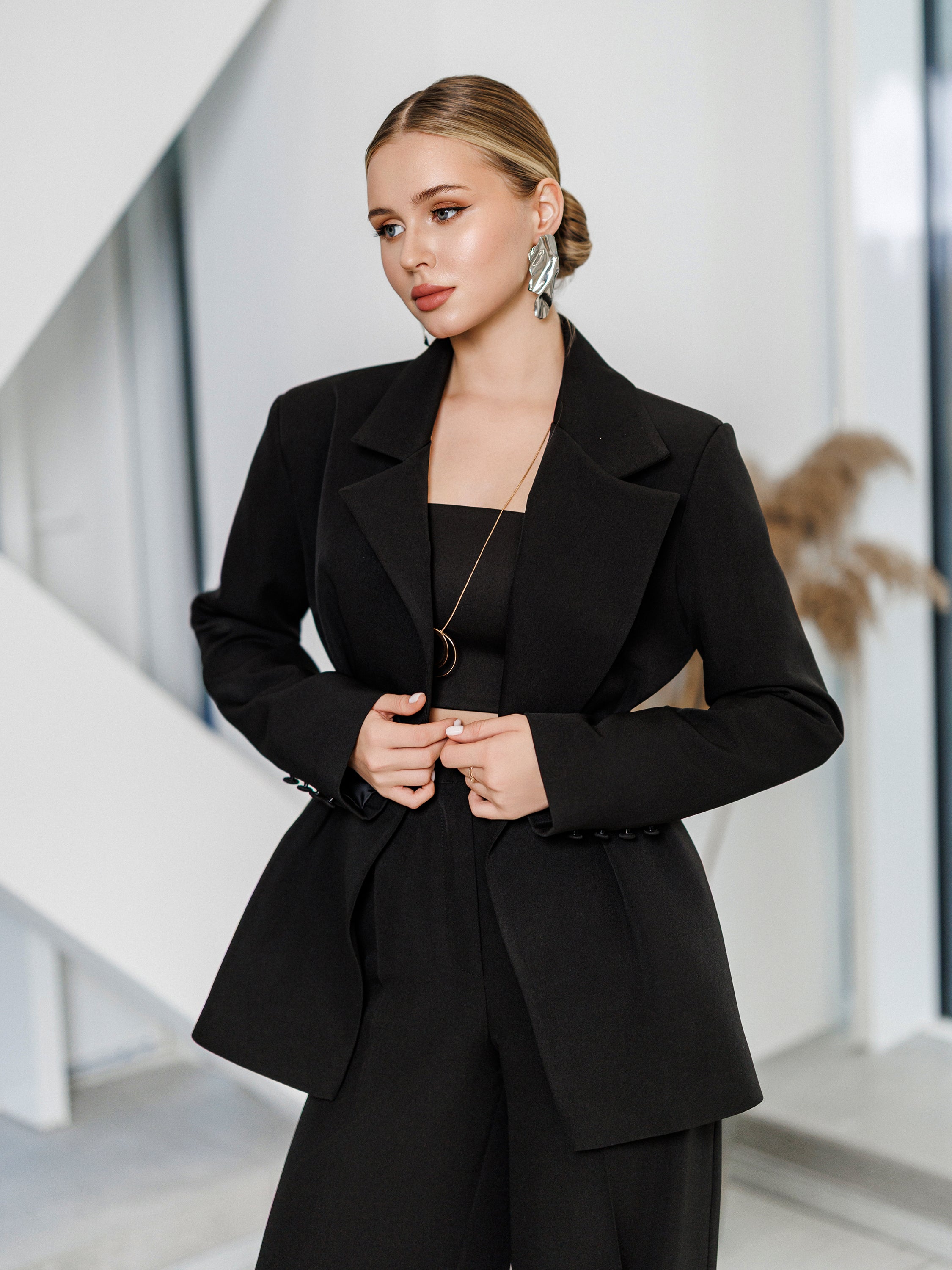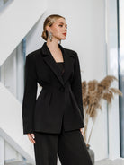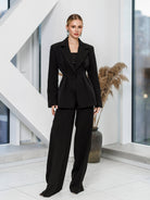 Kaia Black Single-Breasted Pleated-Waist Suit 2-Piece