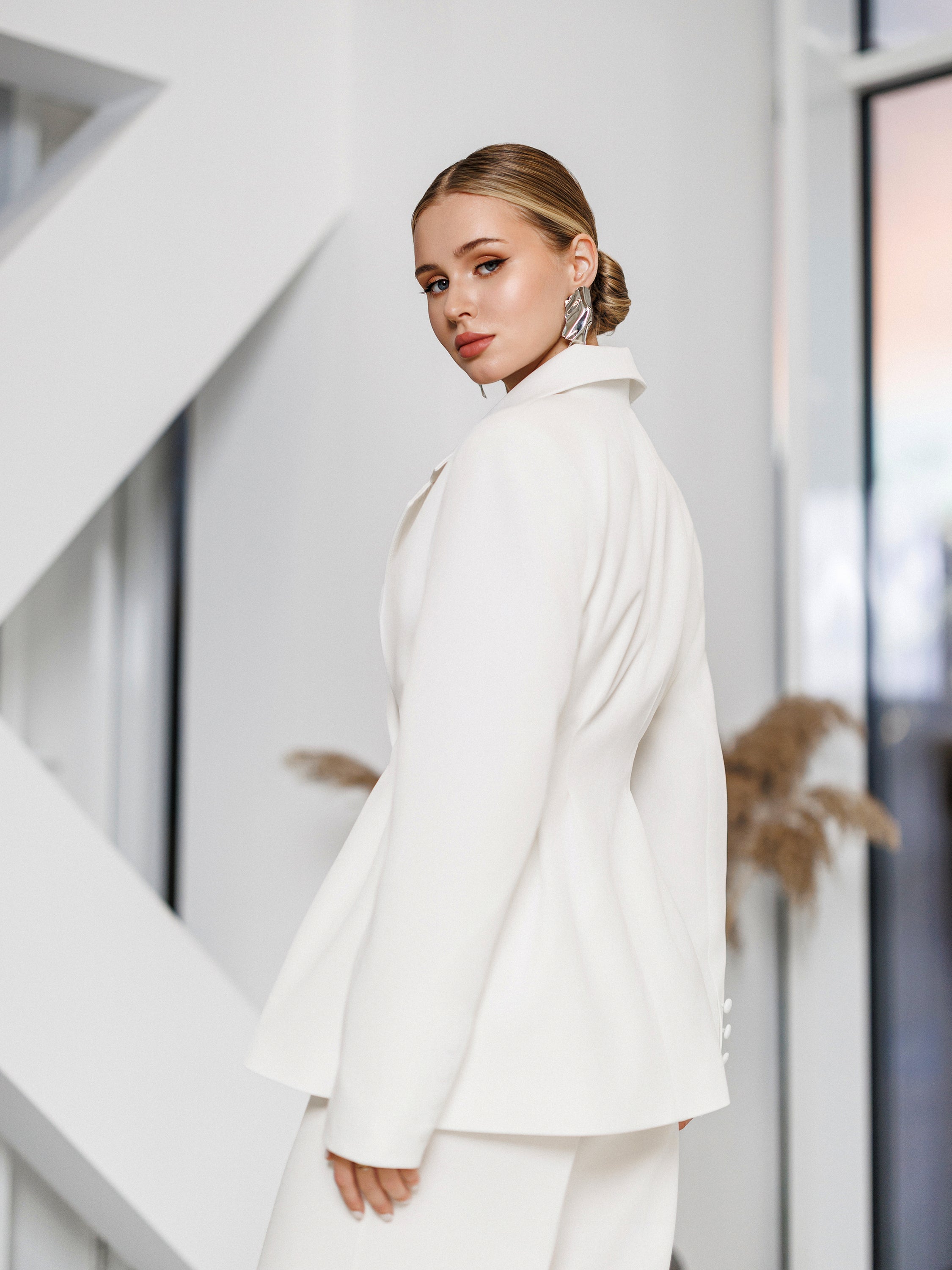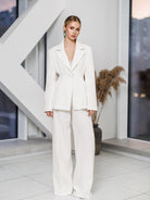 Kaia White Single-Breasted Pleated-Waist Suit 2-Piece