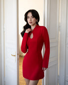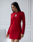 Monica Red Long-Sleeve Keyhole Mini Dress