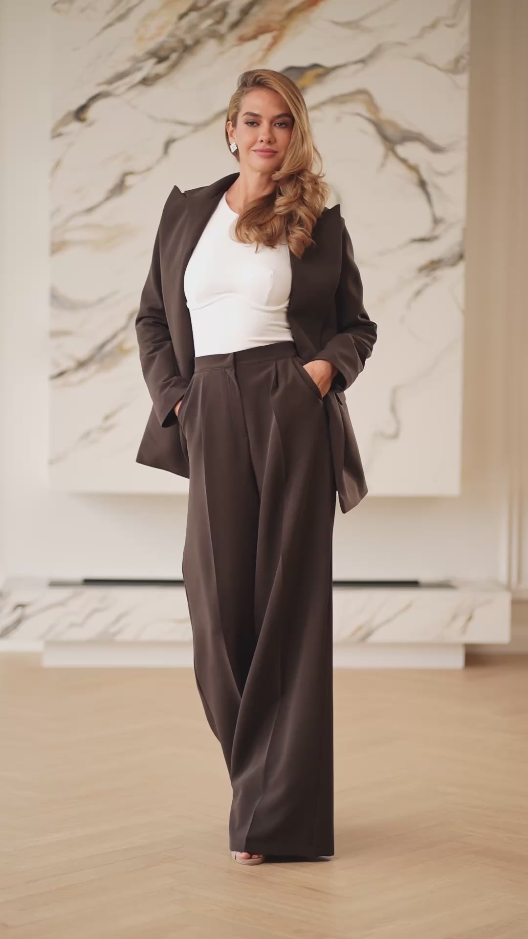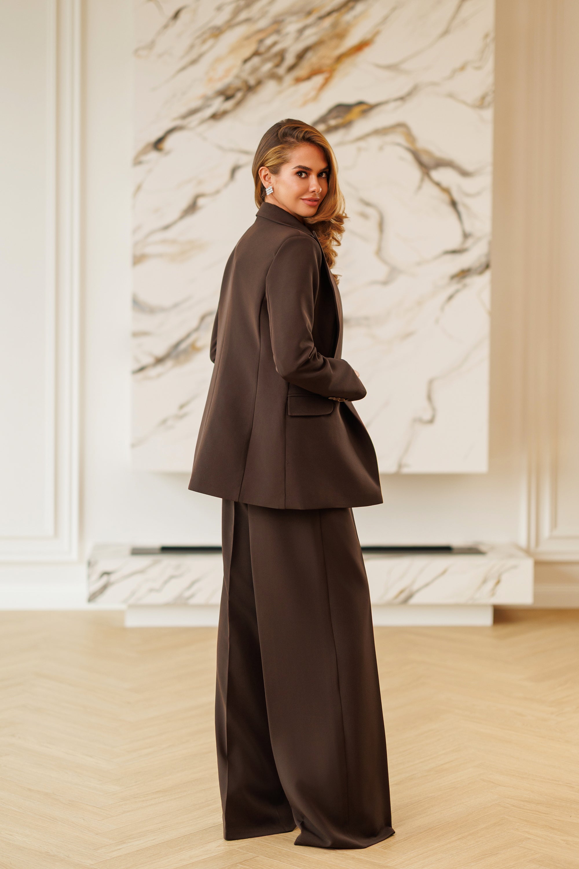 Selene Brown Single-Breasted Relaxed-Fit Suit 2-Piece