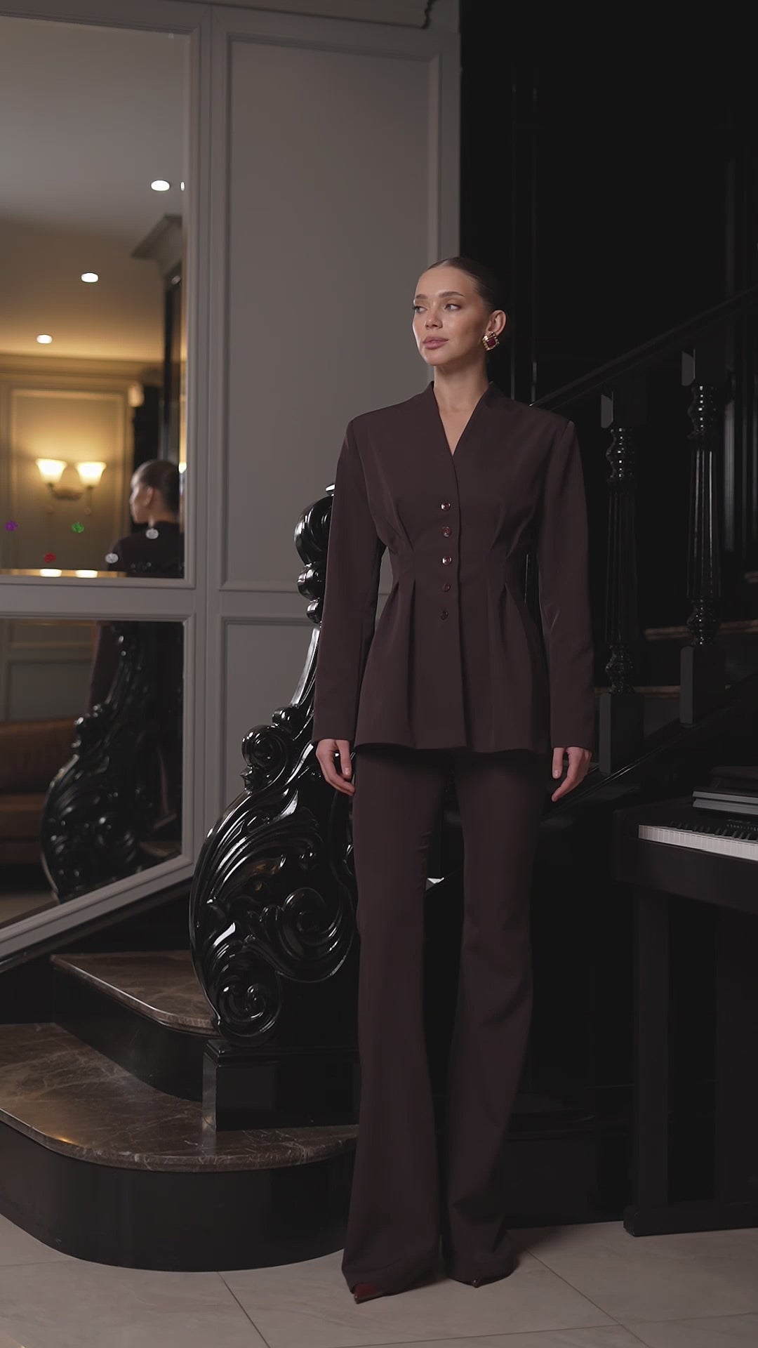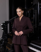 Serena Brown Single-Breasted Sculpted-Waist Suit 2-Piece