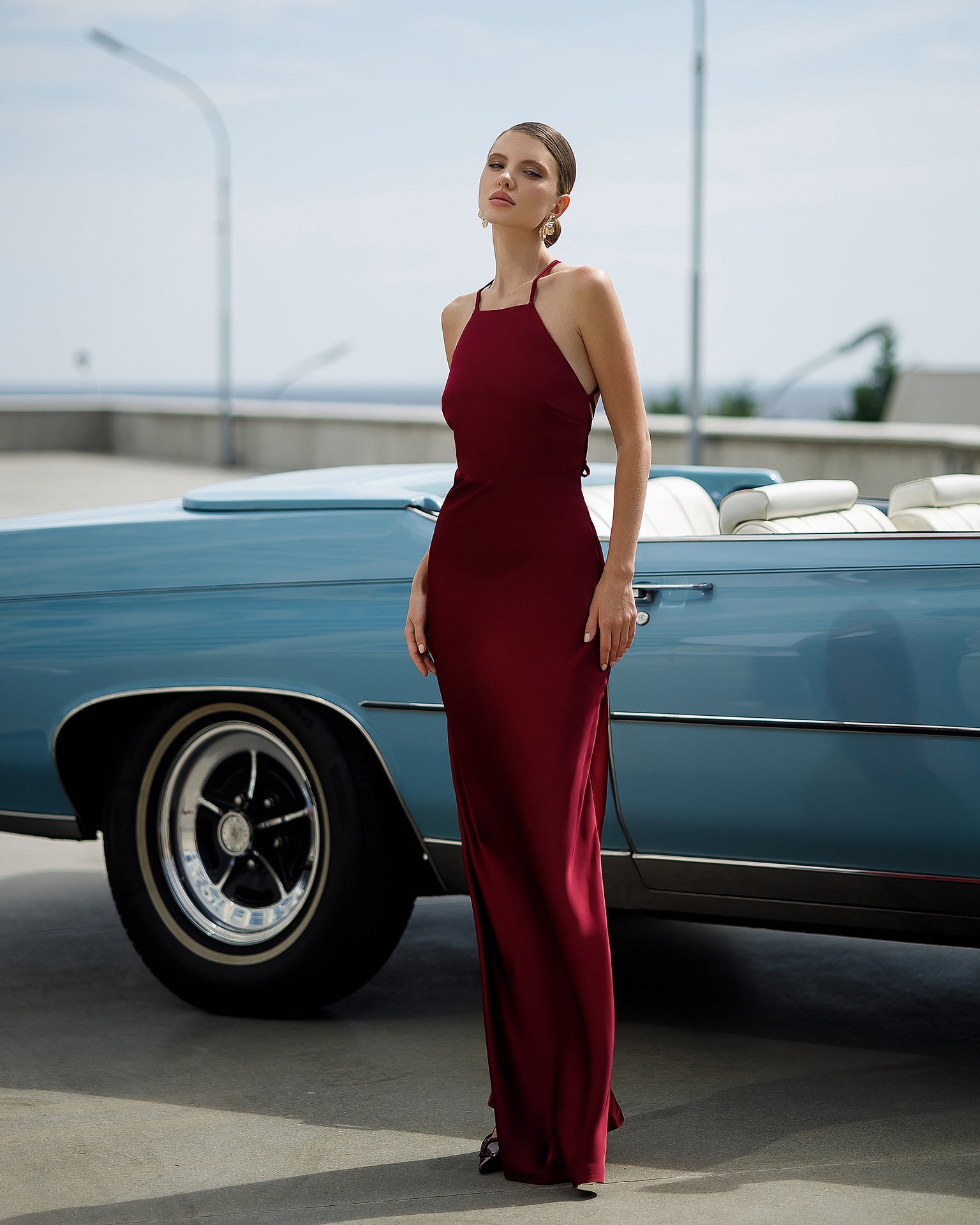 Stella Bordeaux Satin Slip Maxi Dress
