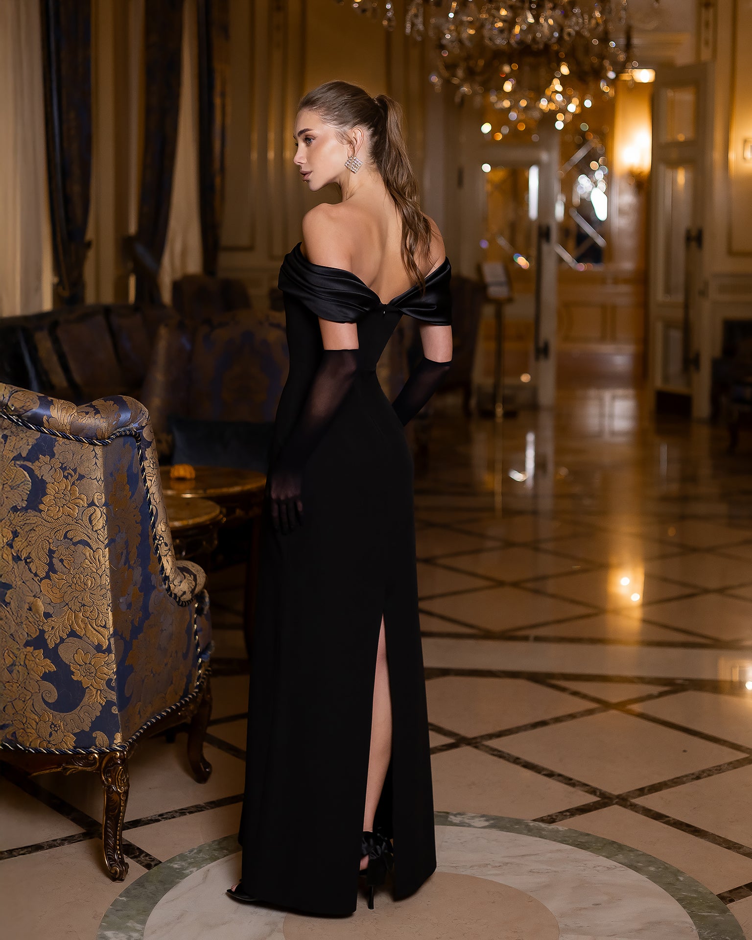 Léa Black Off-the-Shoulder Draped Maxi Dress