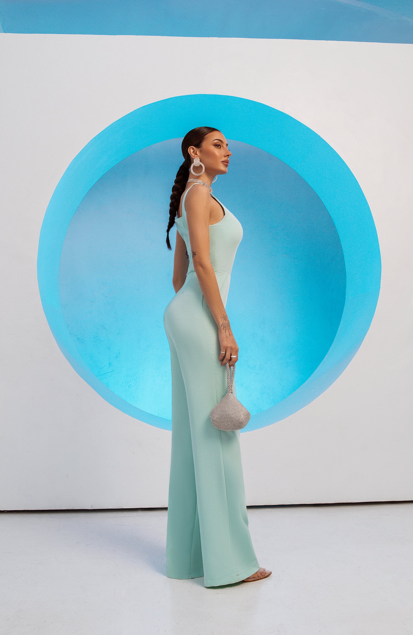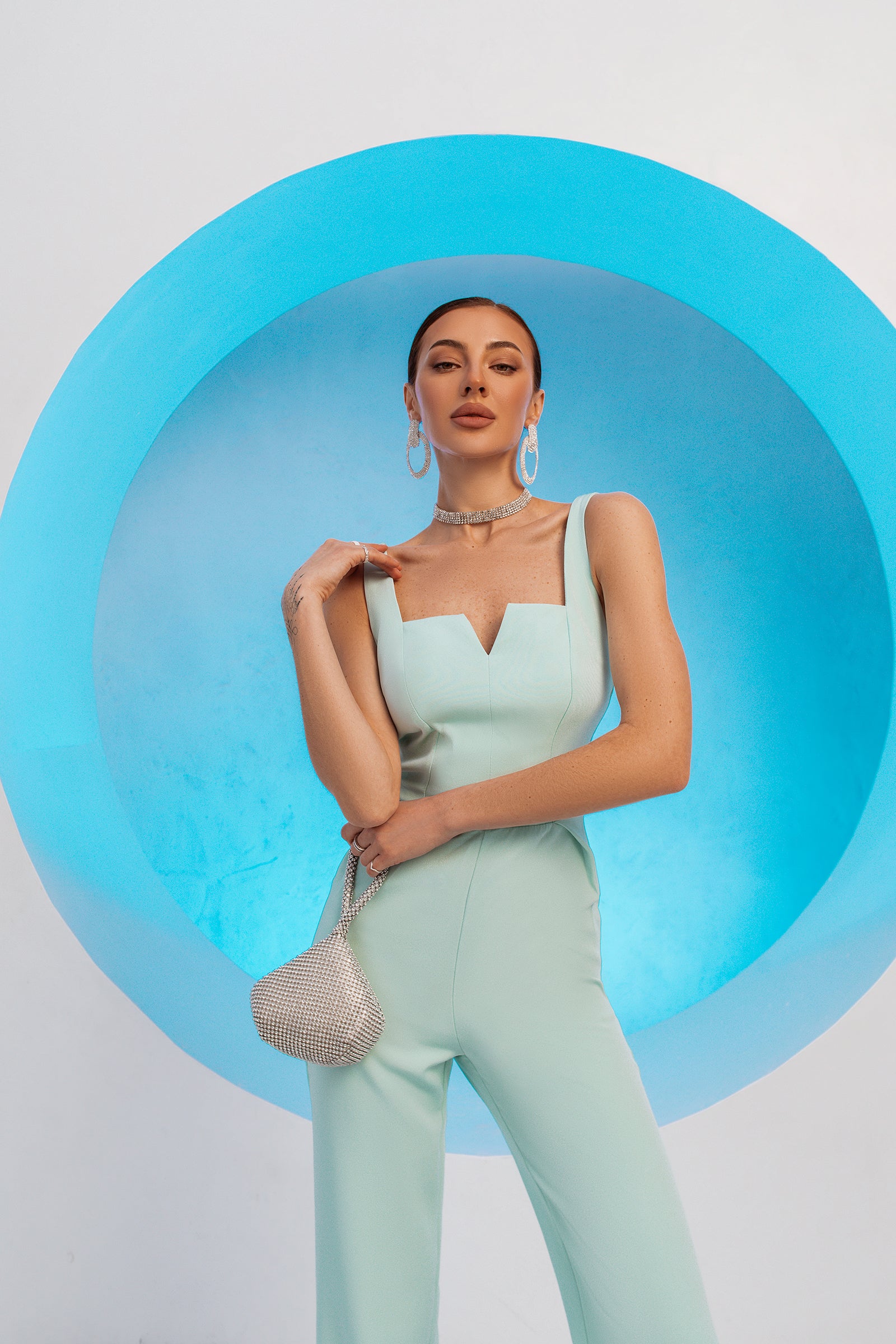 Tiffany-Blue Sleeveless V-neck Jumpsuit