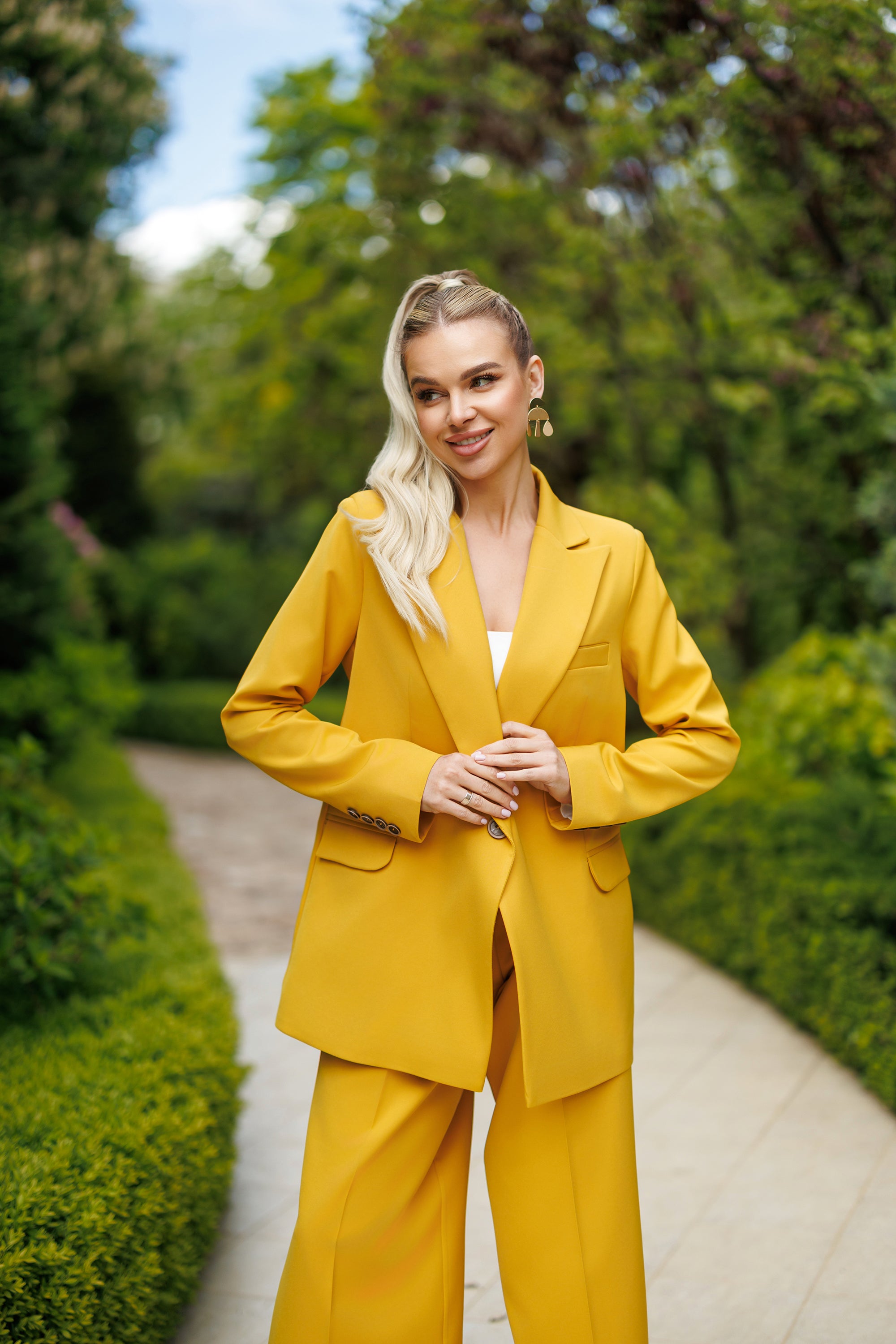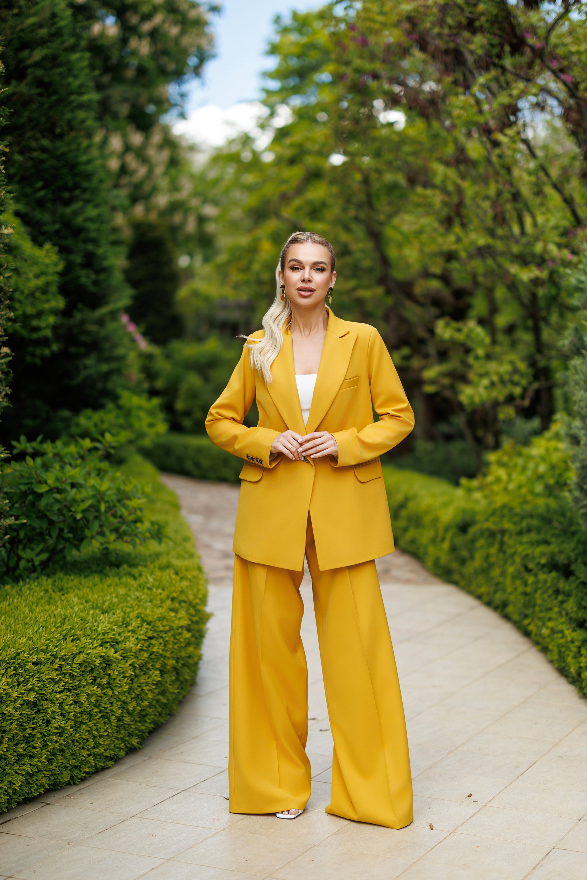 Selene Mustard Single-Breasted Wide-Leg Suit 2-Piece