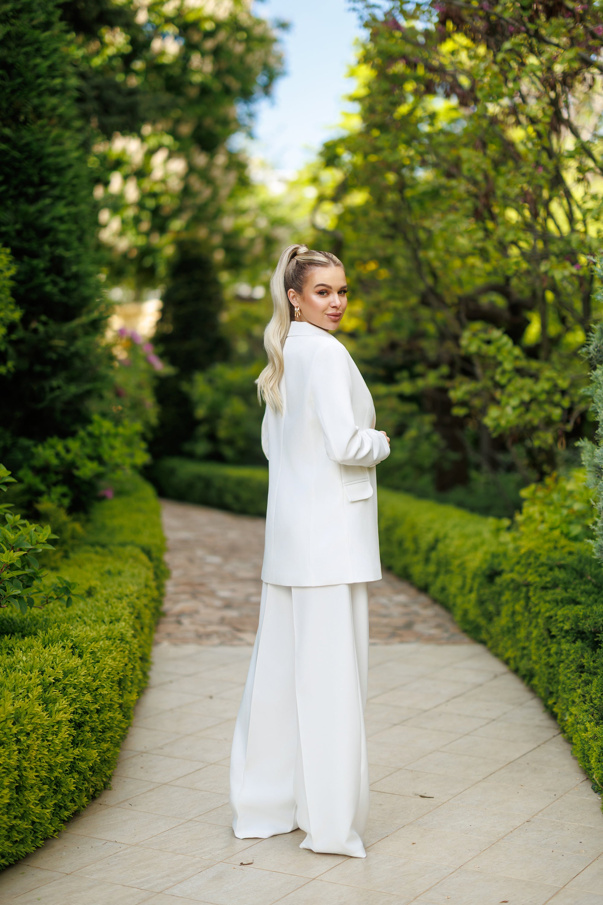 Selene White Single-Breasted Wide-Leg Suit 2-Piece