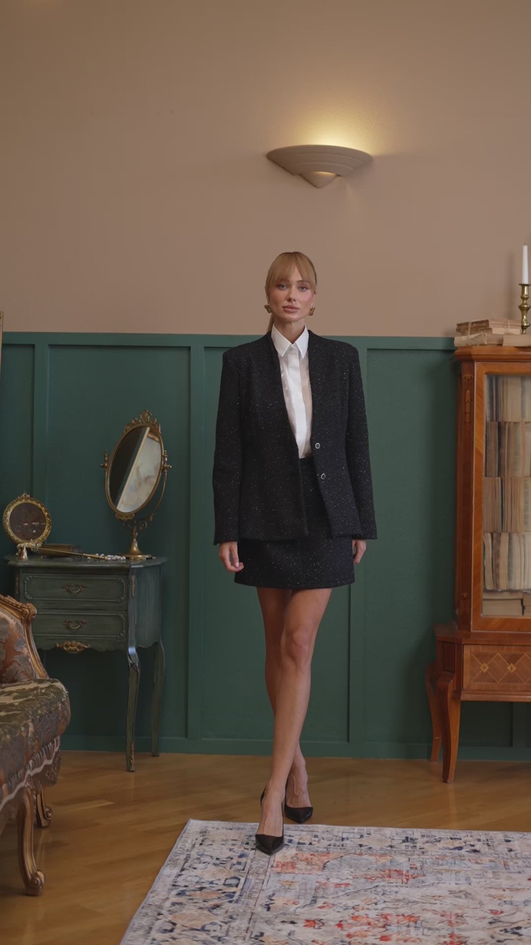 Serena Black Tweed Peplum Blazer & Mini Skirt Suit 2-Piece