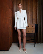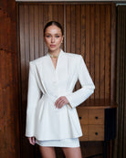 Serena White Peplum Jacket Skirt Suit 2-Piece