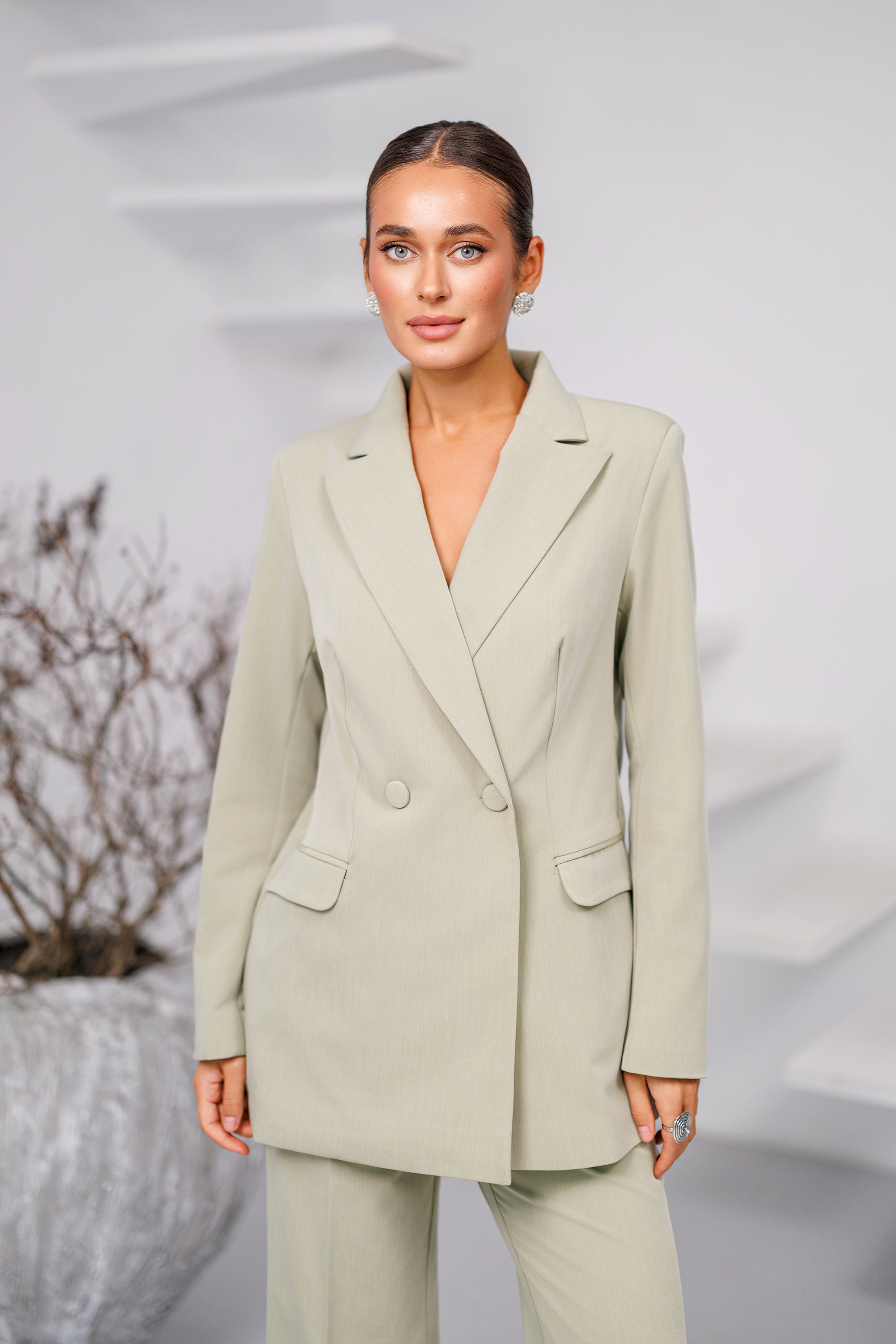 Avira Olive Double-Breasted Suit 2-Piece