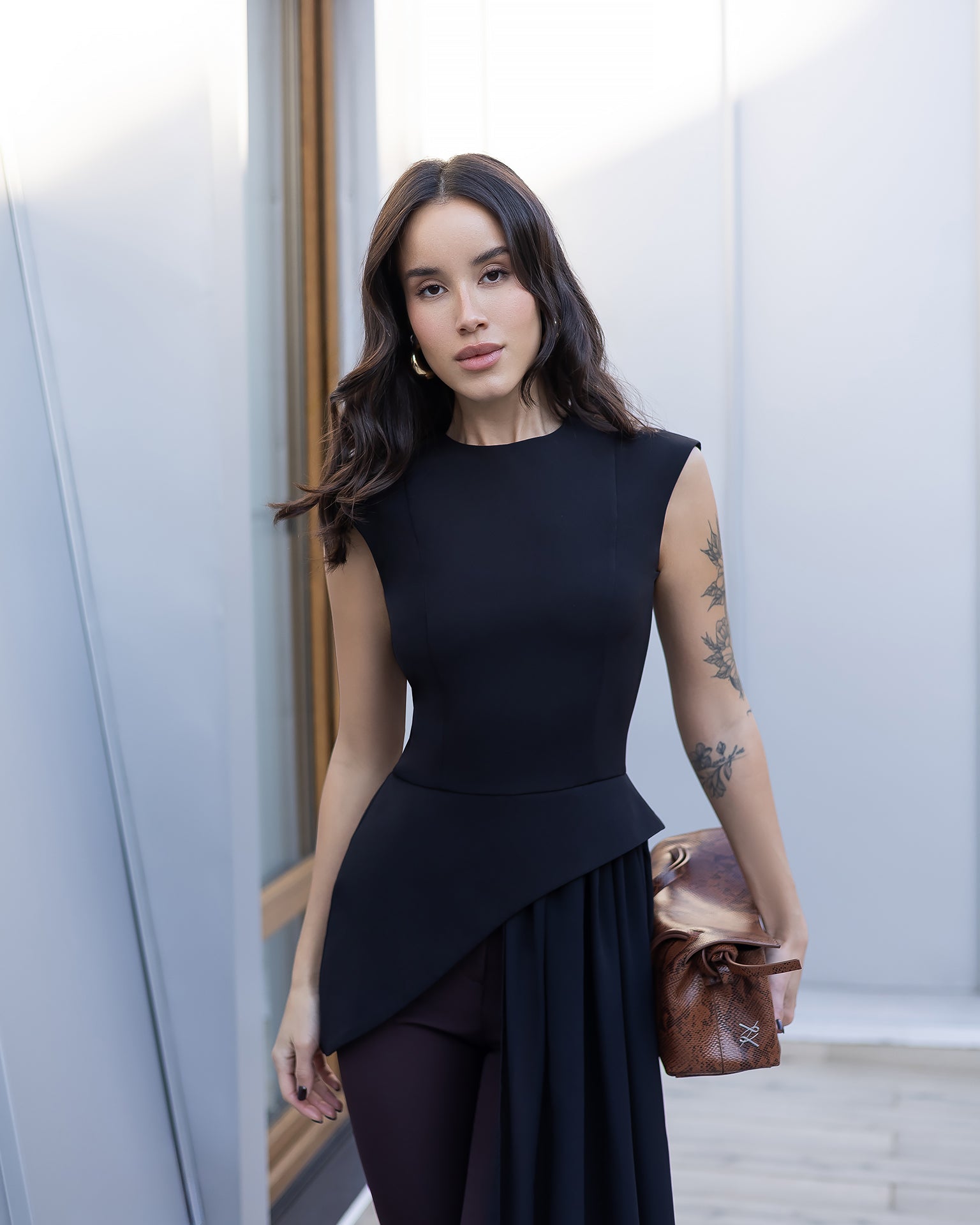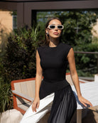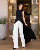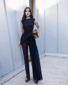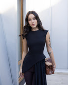 Serena Black Asymmetric Overlay Waist Top