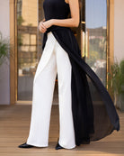 • Fabric dense crepe with chiffon overlay