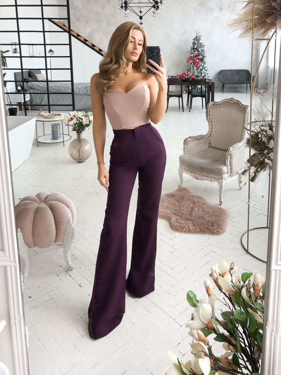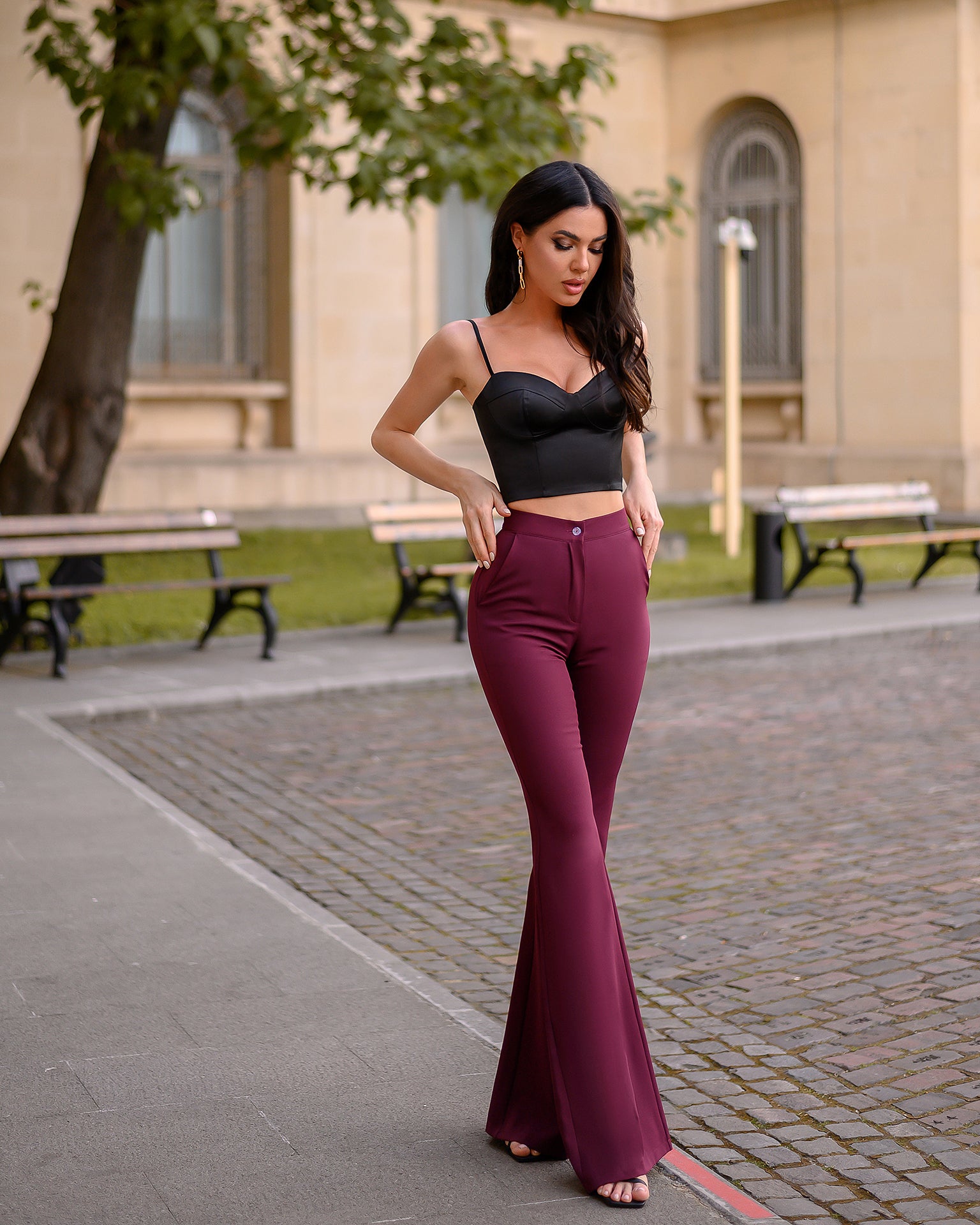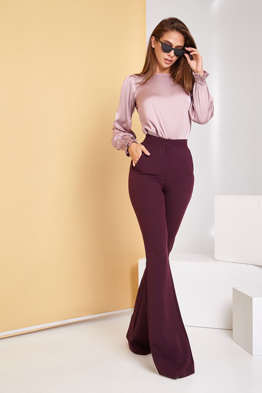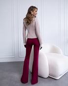 Bordeaux High Waist Fitted Flared Pants