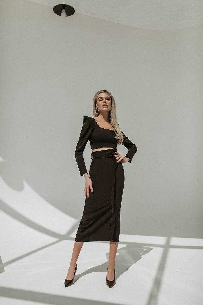 Black Long Sleeve Top & Maxi Skirt 2-Piece Set