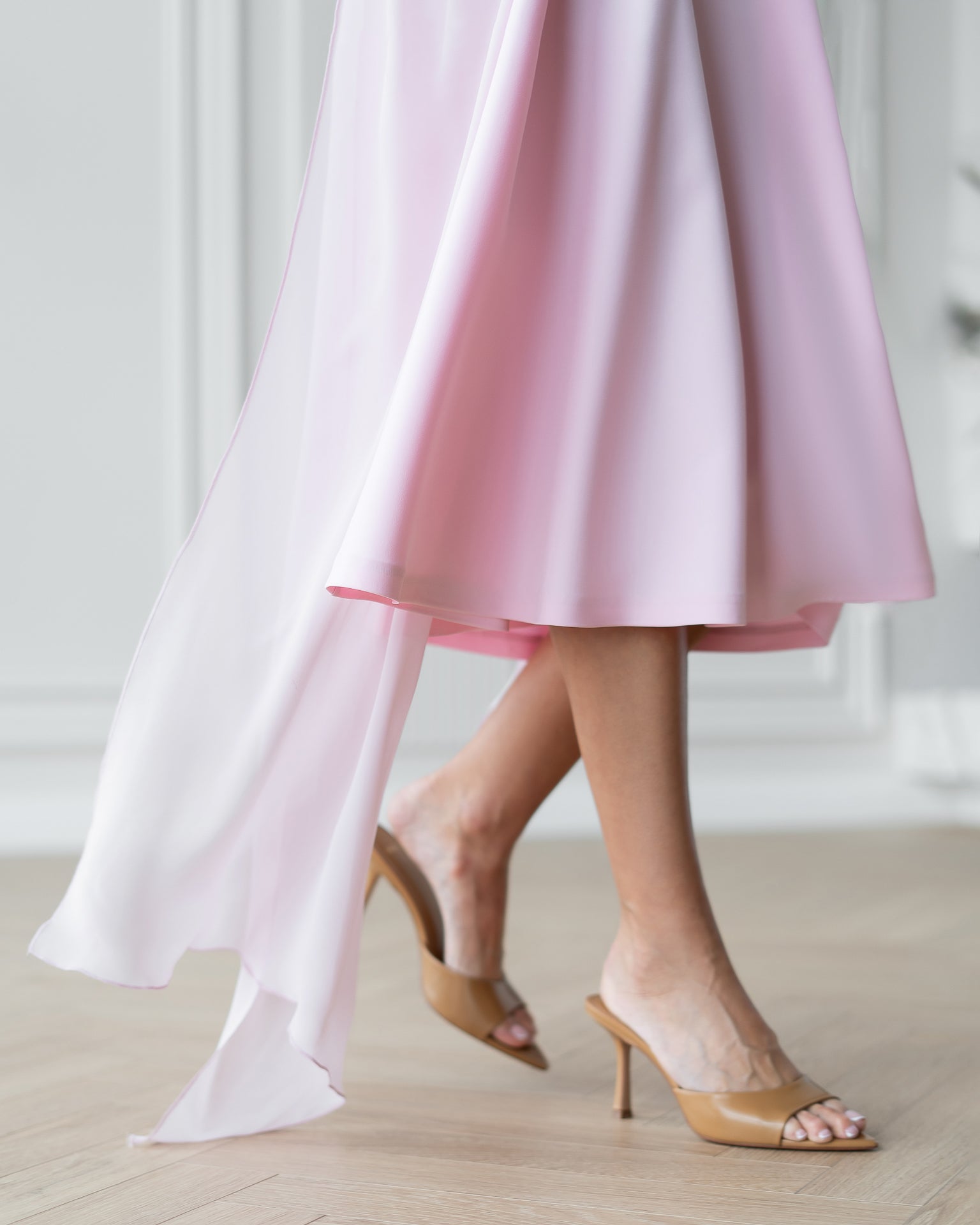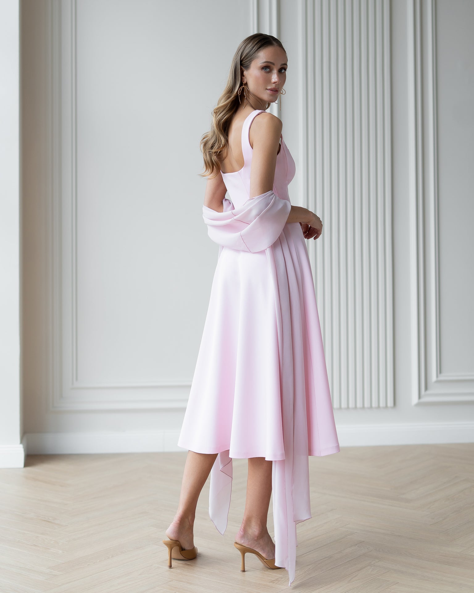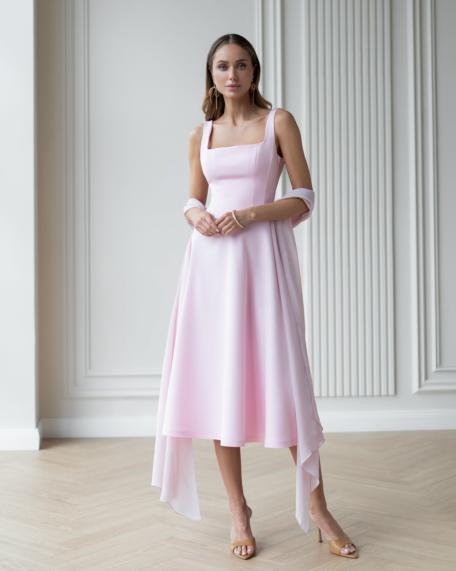 Stella Dusty-Pink Square Neck Backless Midi Dress