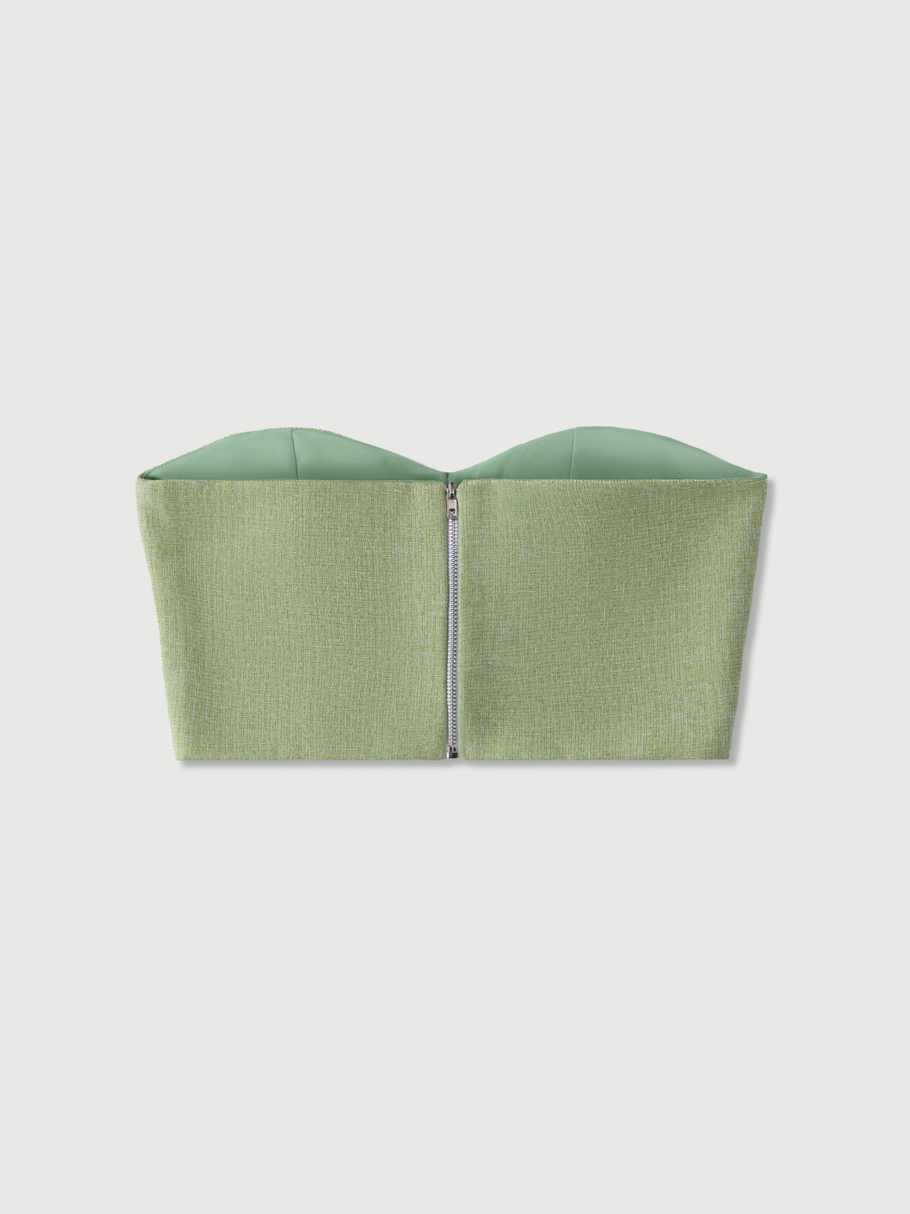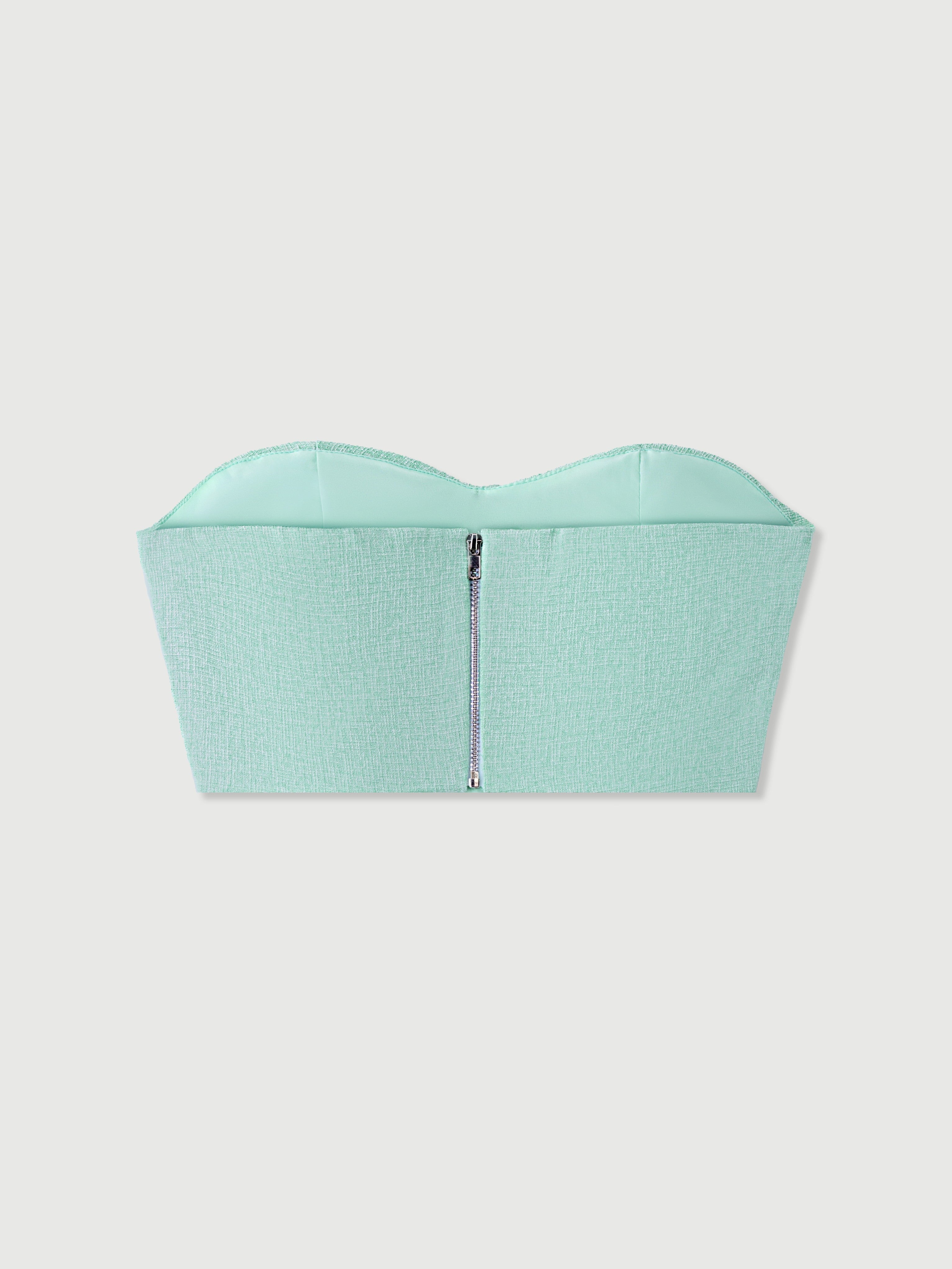 Elagia Tiffany-Blue Tweed Sweetheart Crop Top