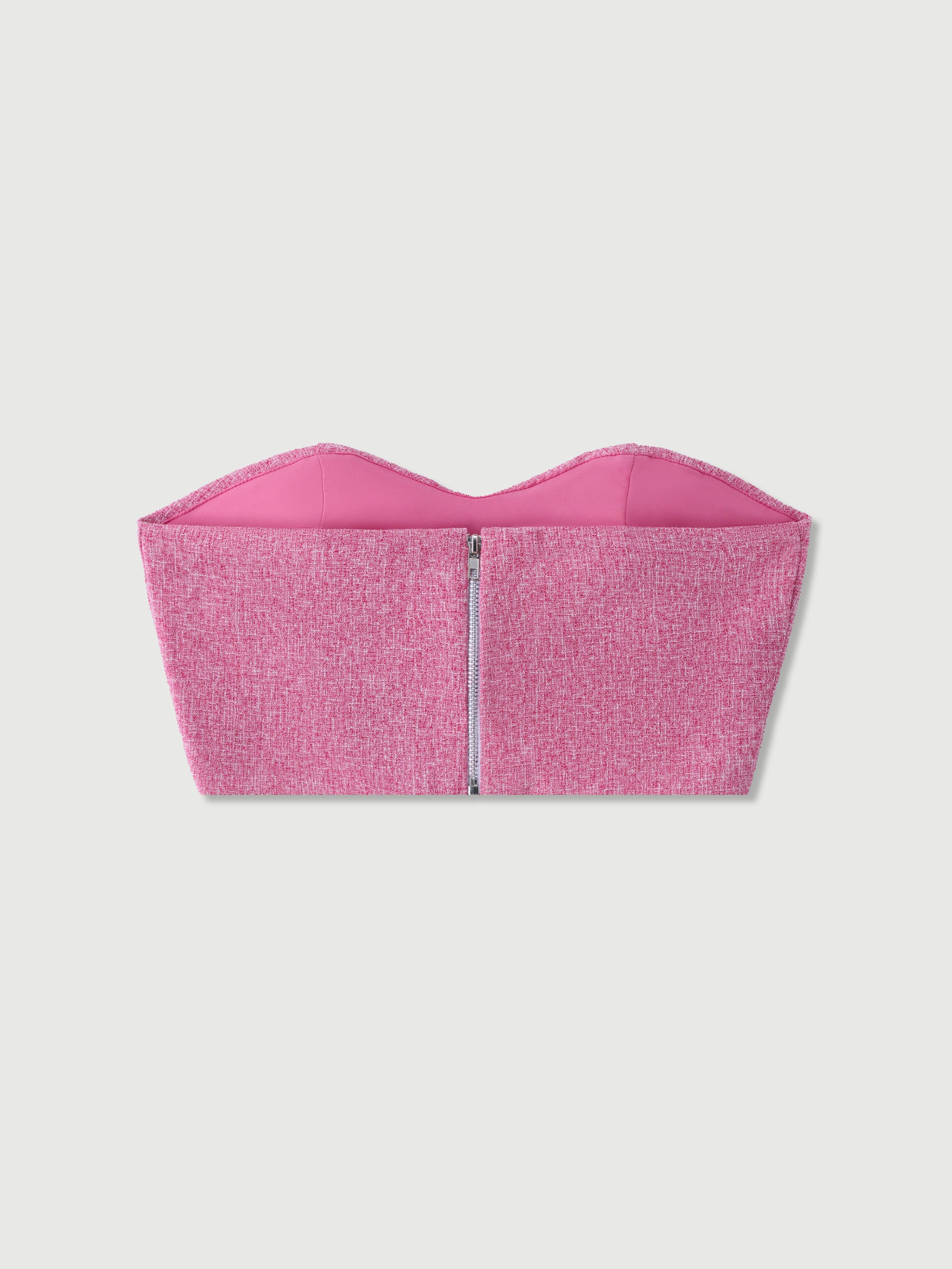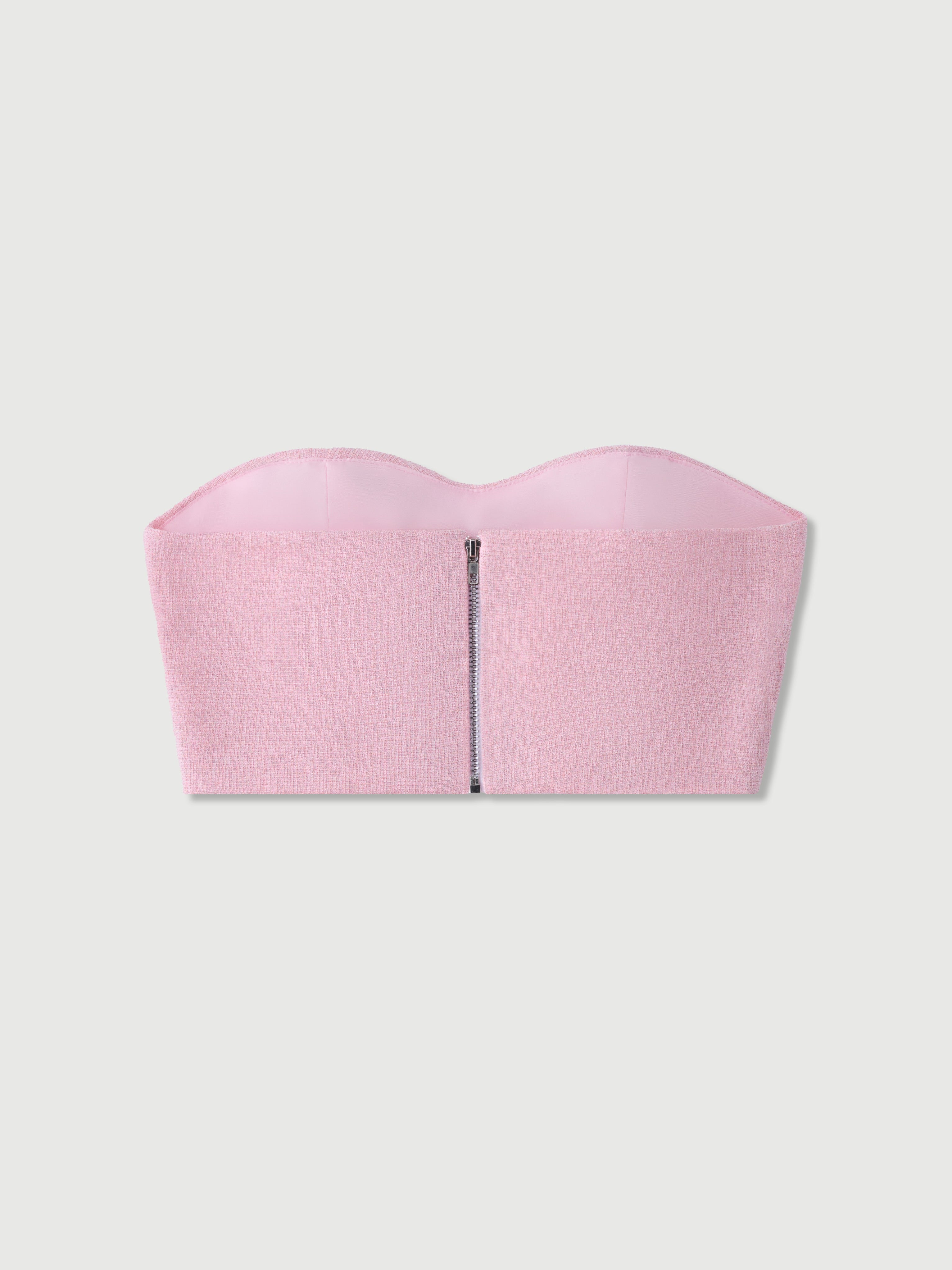 Elagia Dusty Pink Tweed Sweetheart Crop Top