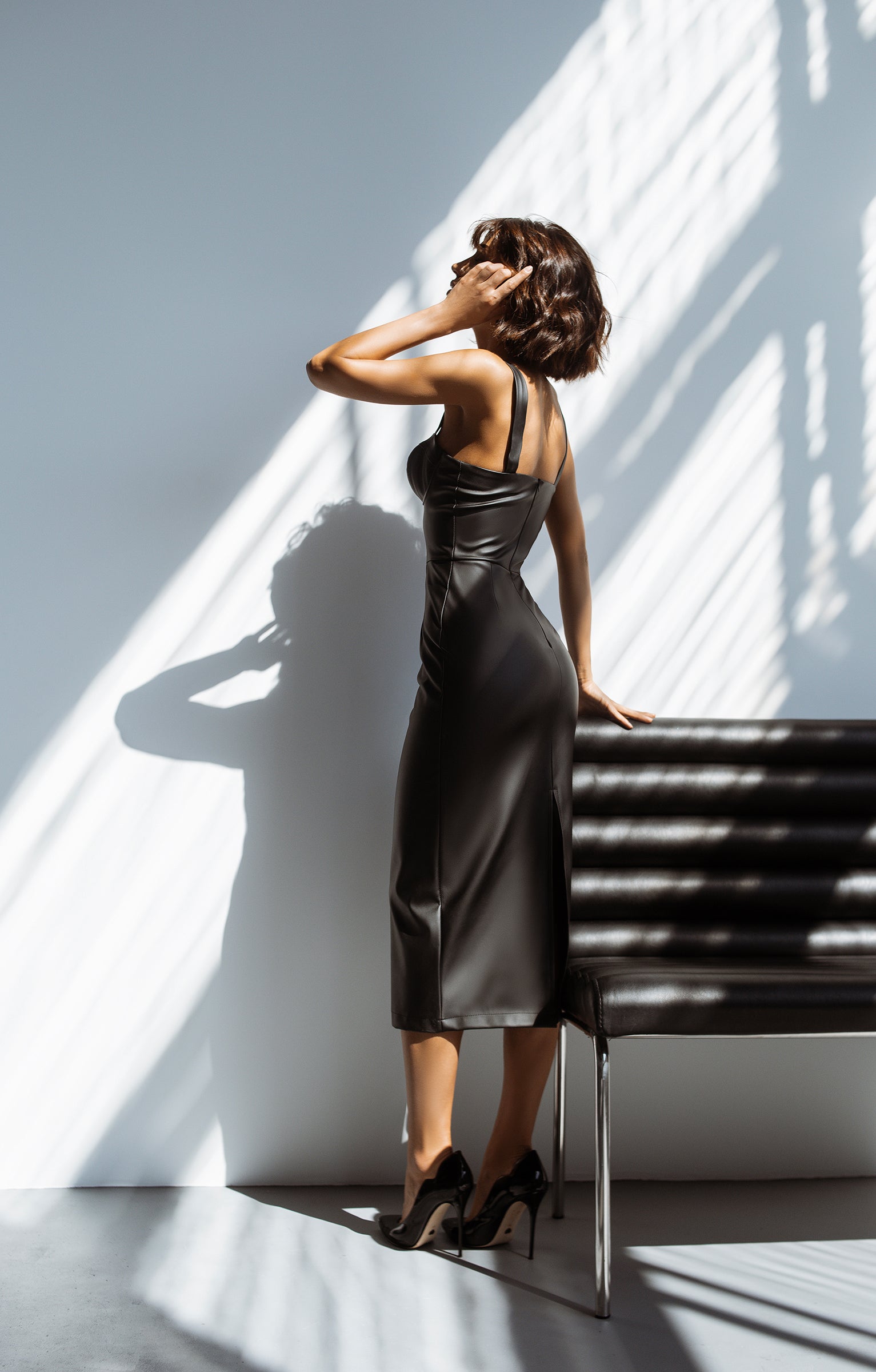 Blue Backless Cut-Out Puff-Sleeve Midi Dress