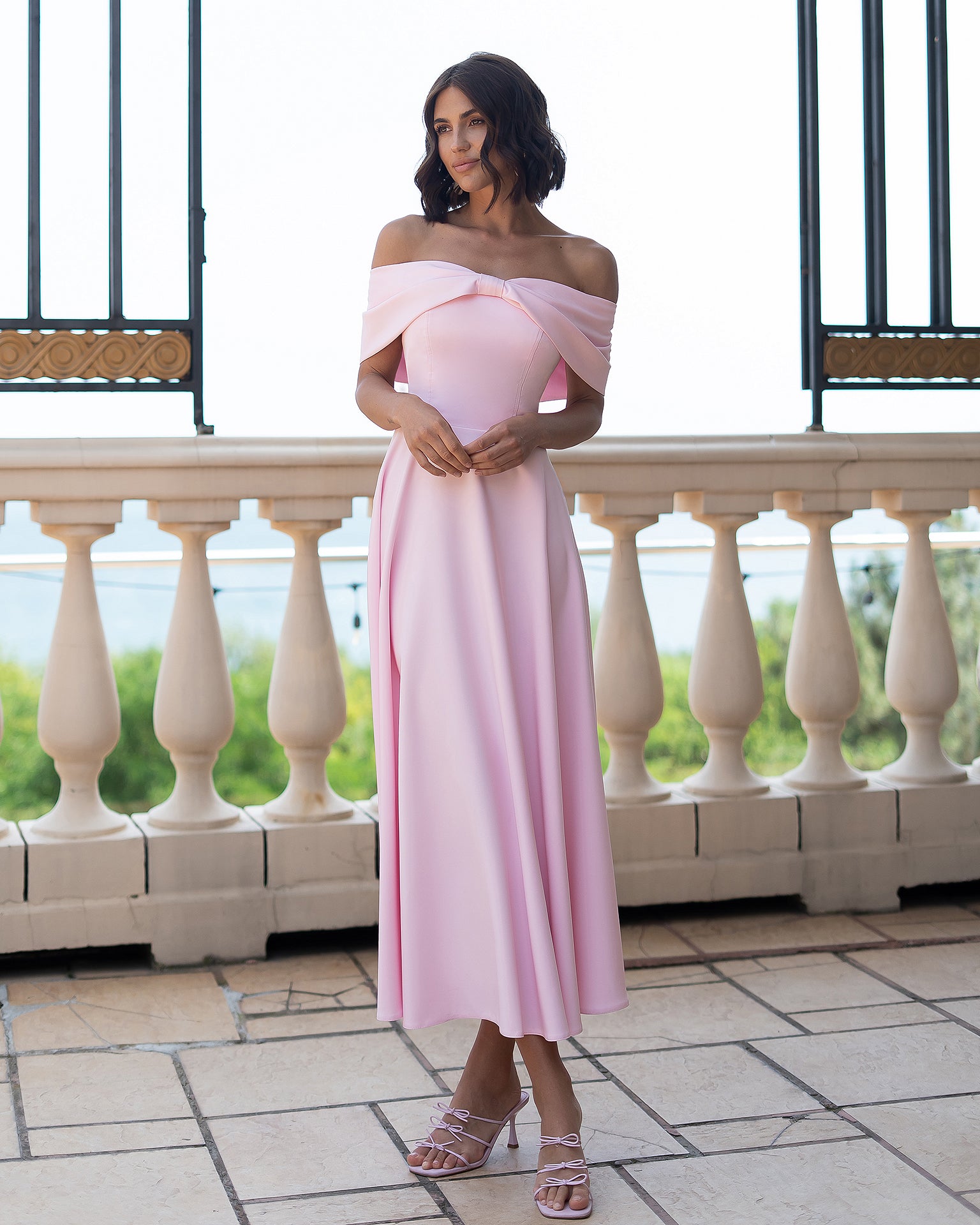 Céline Dusty Pink Off-Shoulder Draped-Bow Midi Dress