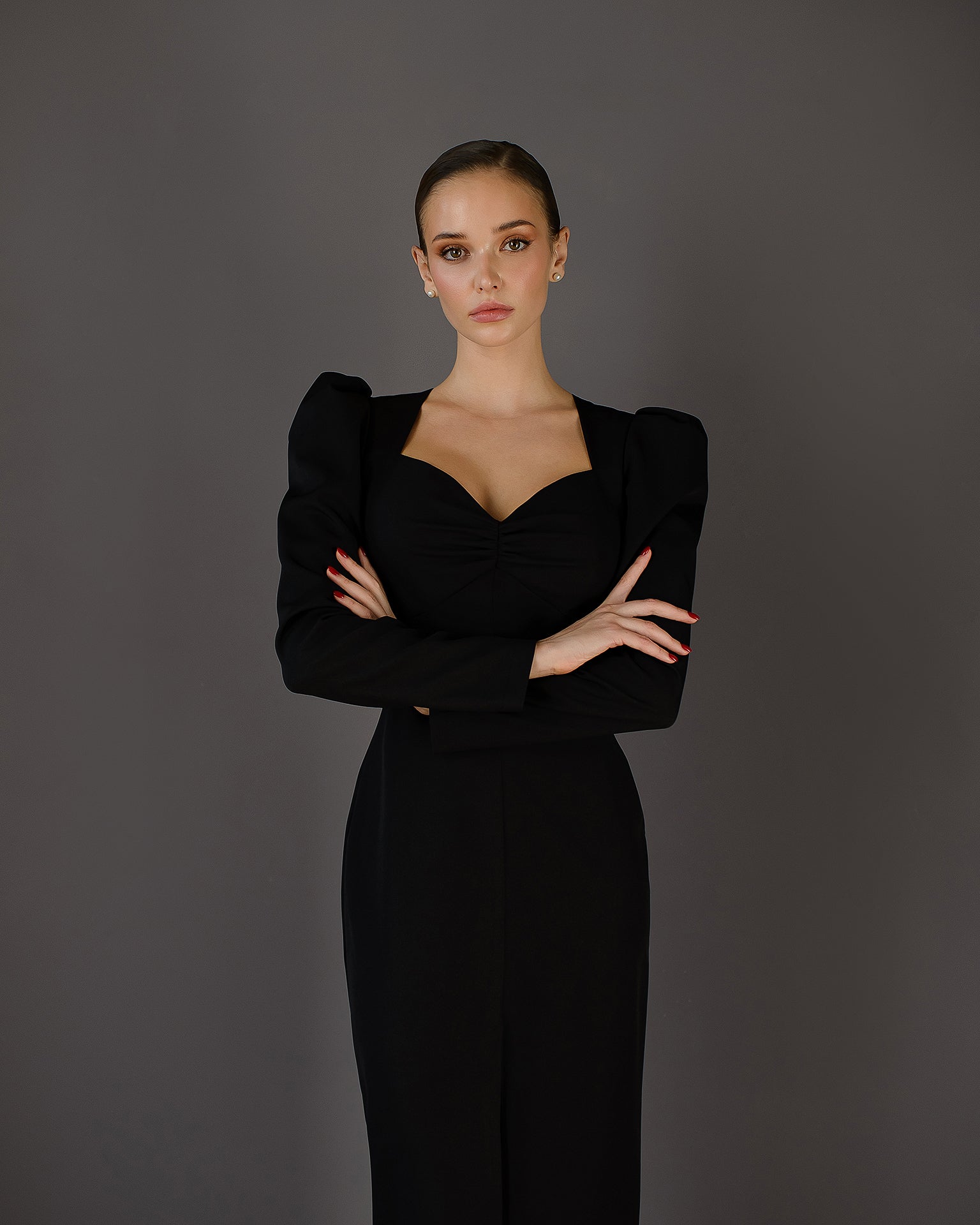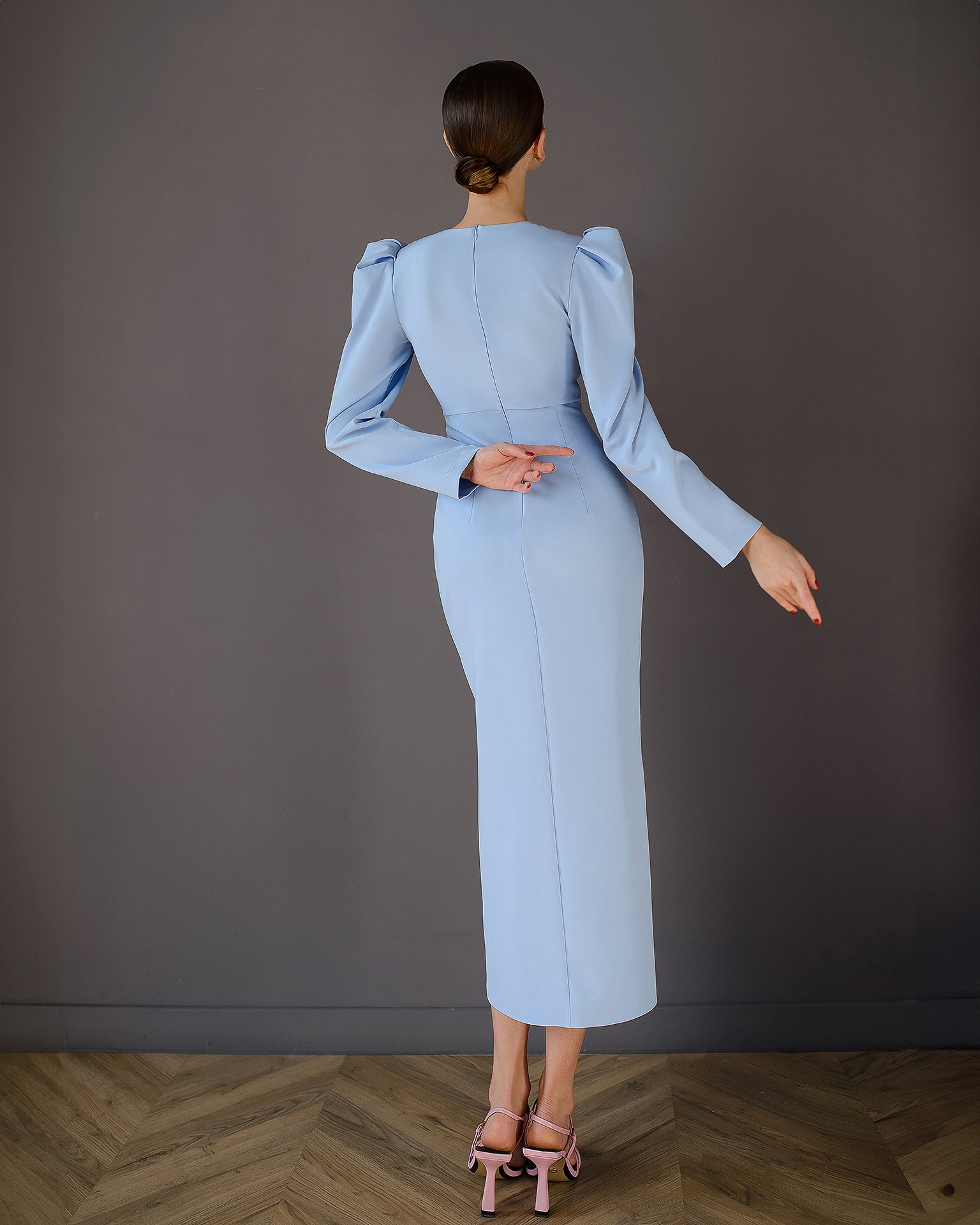 Anne Sky-Blue Puff Sleeve Midi Dress