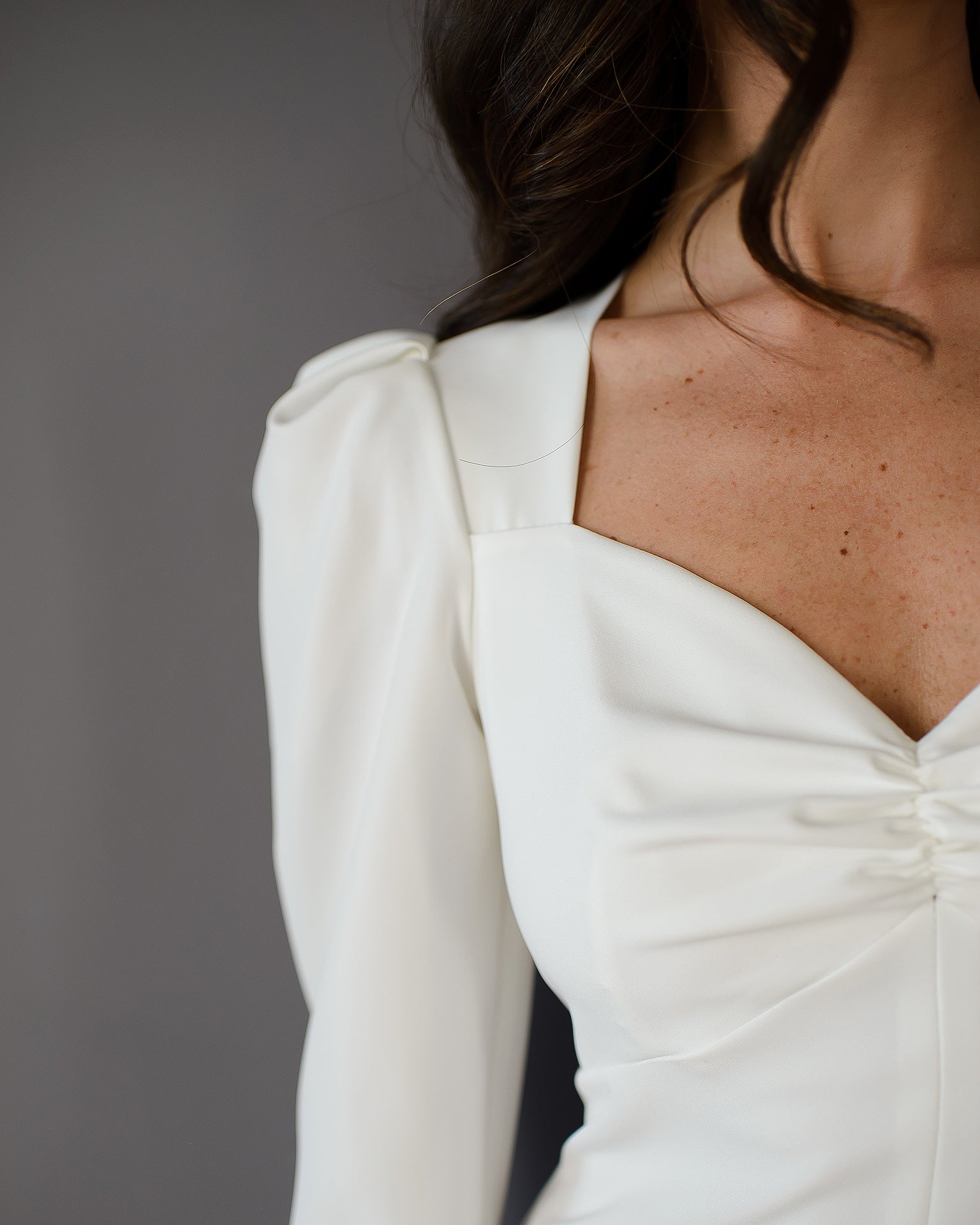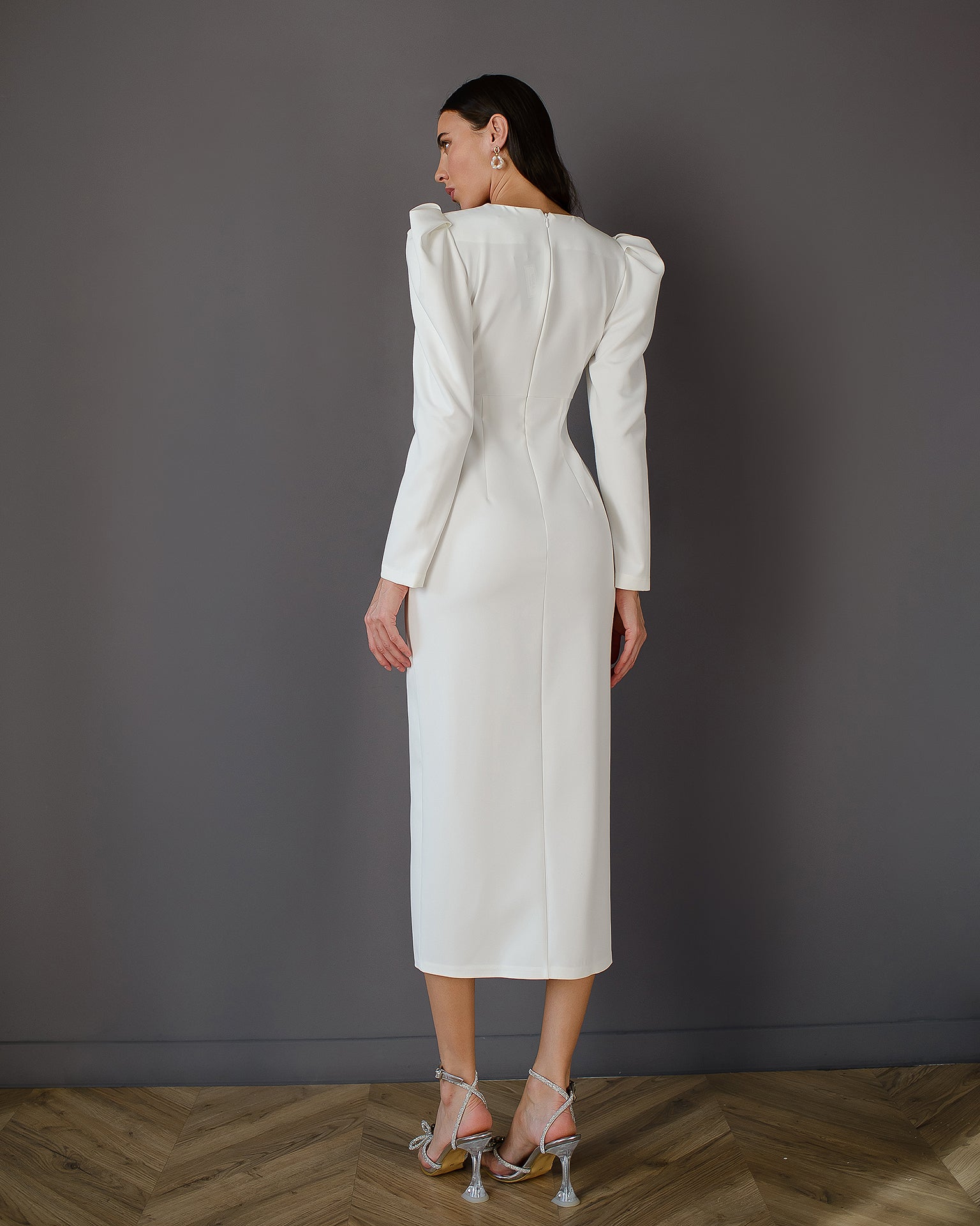 Alexa White Round Neck Puff-Sleeve Midi Dress