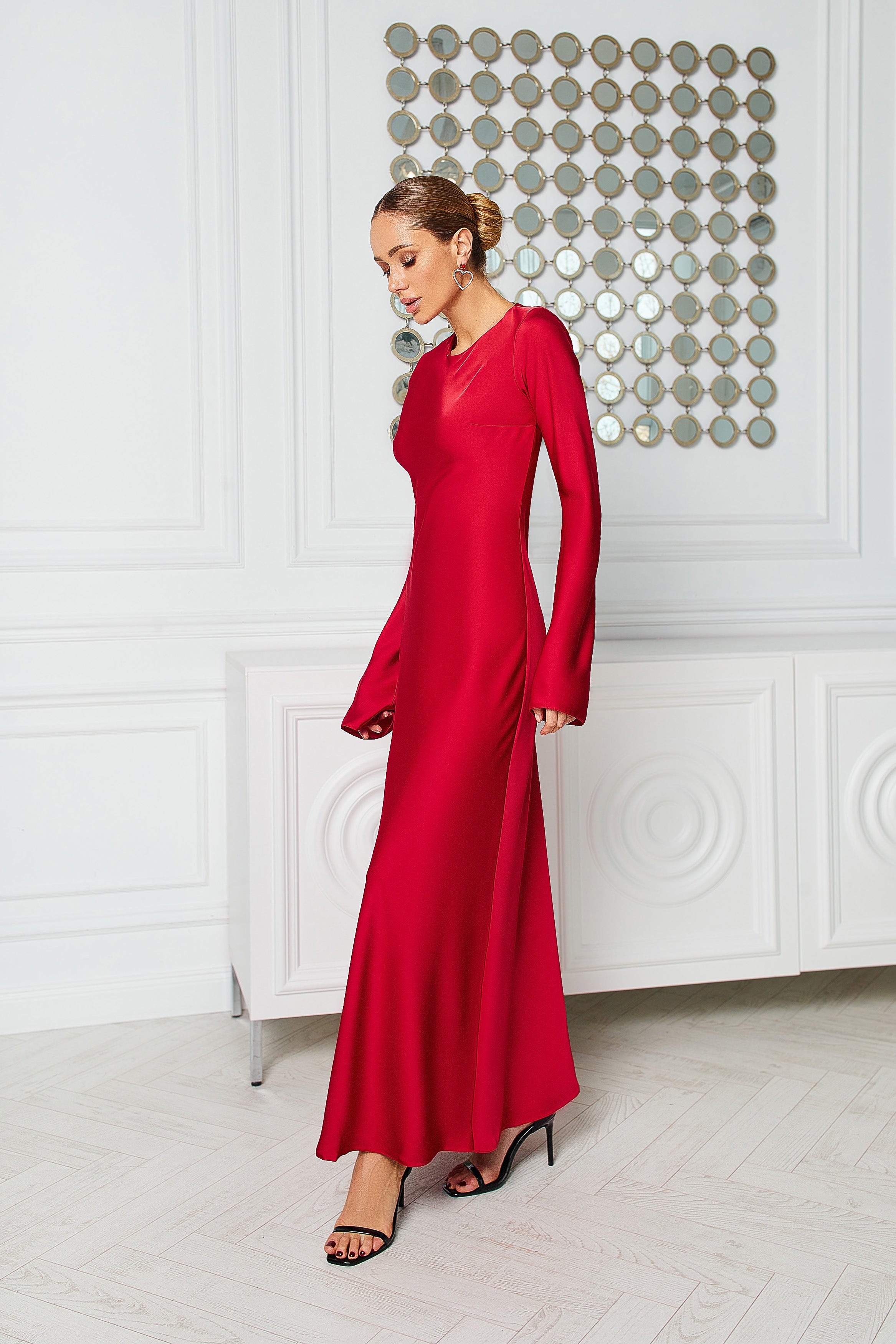 Alexa Red Satin One-Shoulder Cut-Out Midi Dress