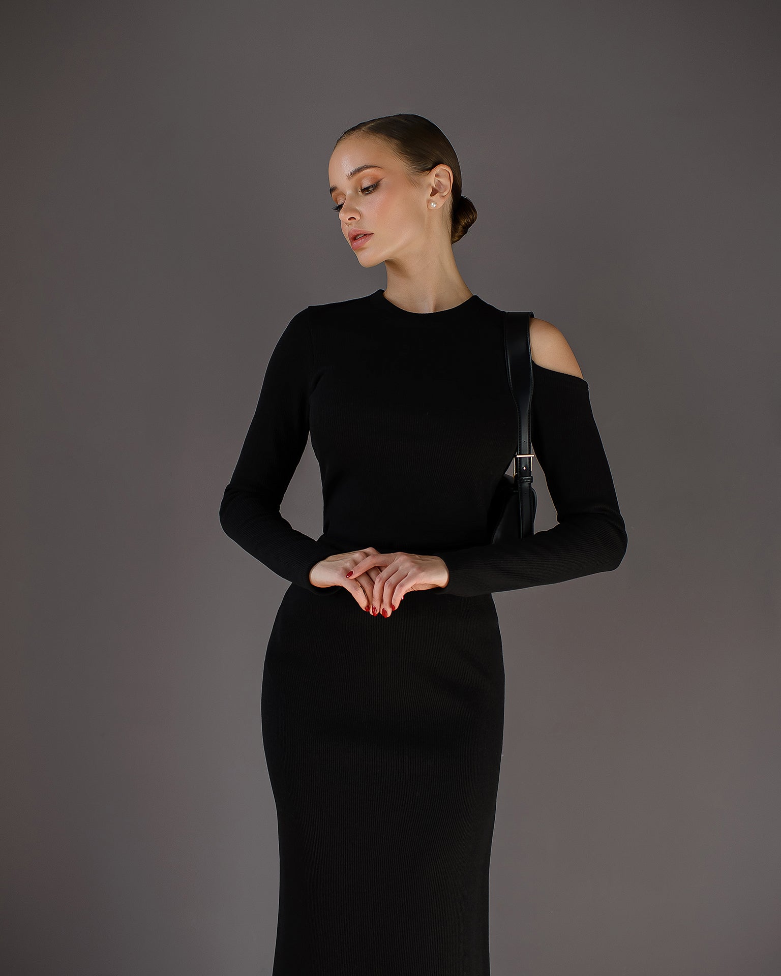 Black Cap Sleeve Corset Cut-Out Maxi Dress