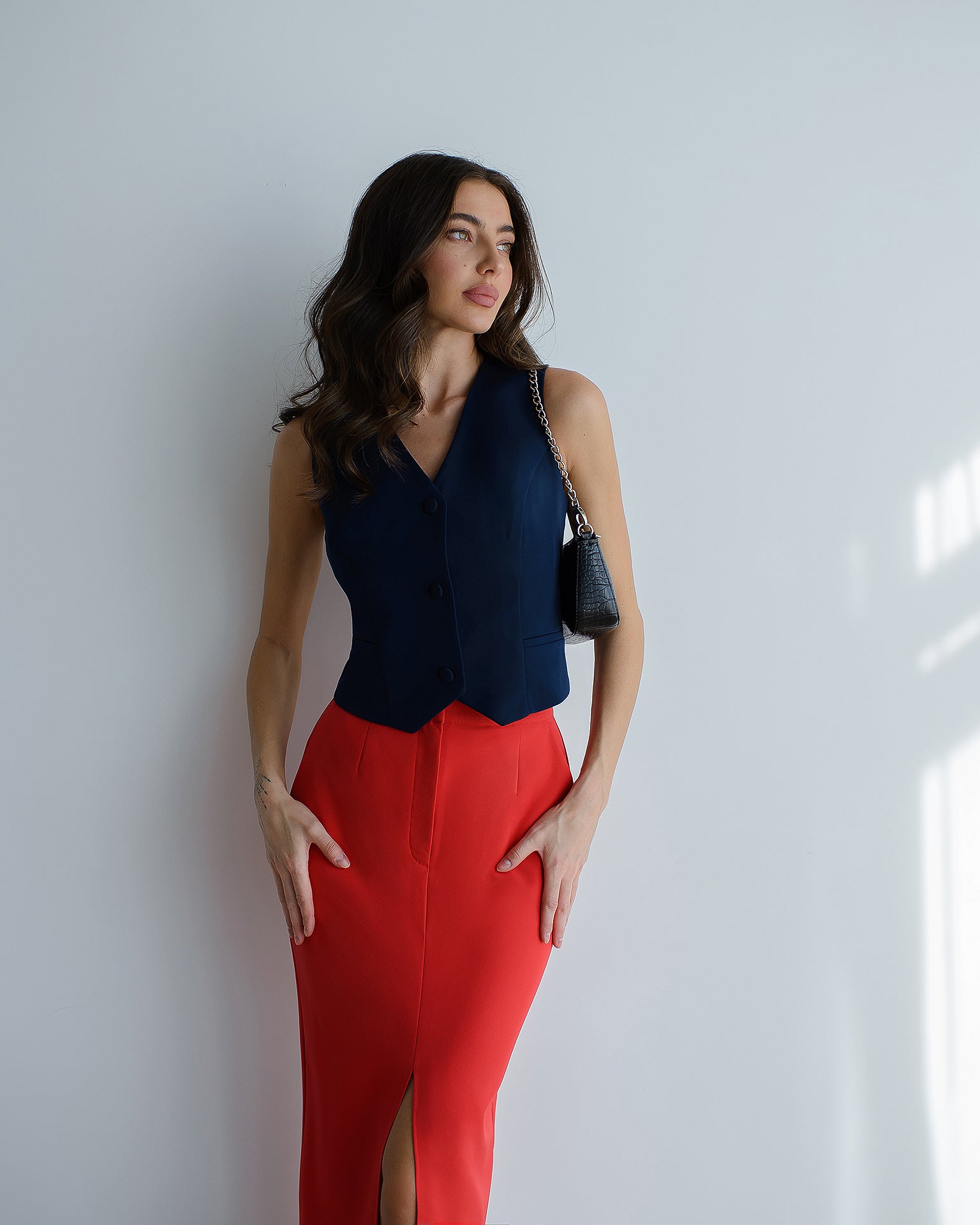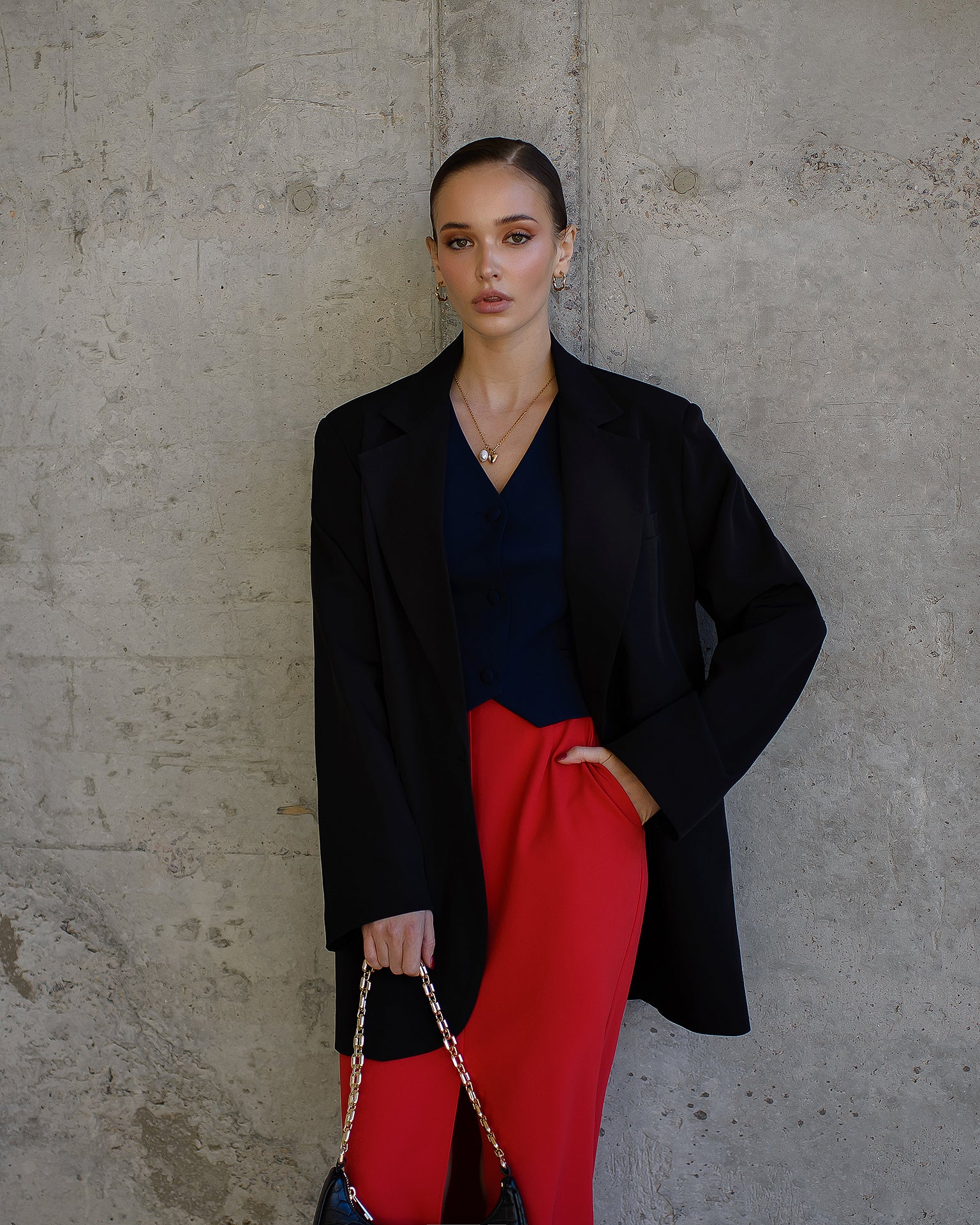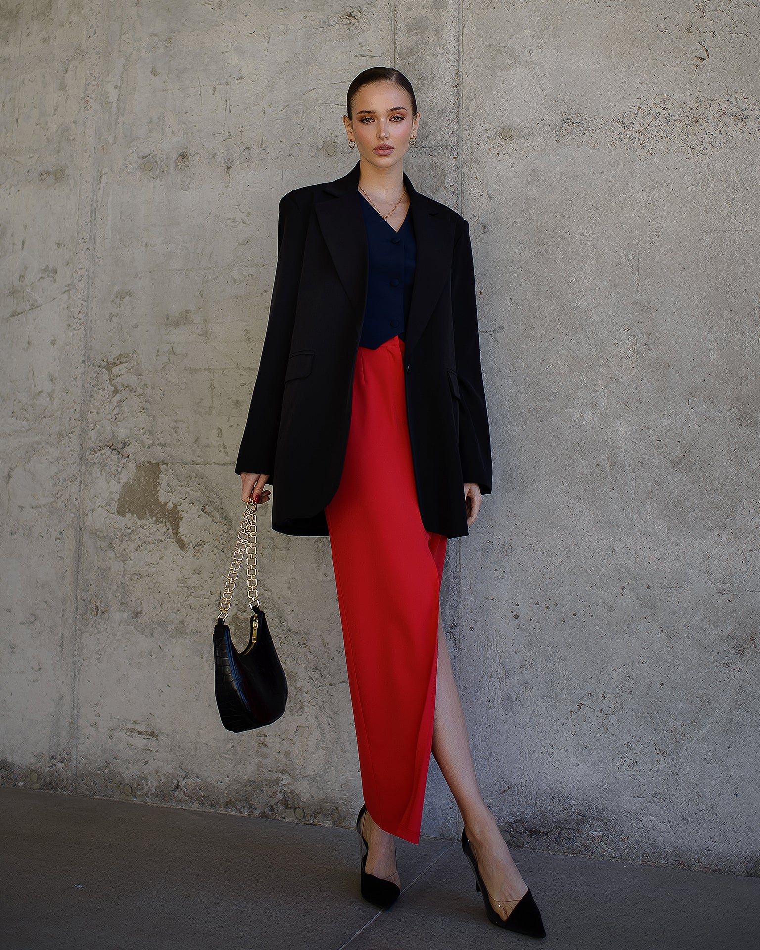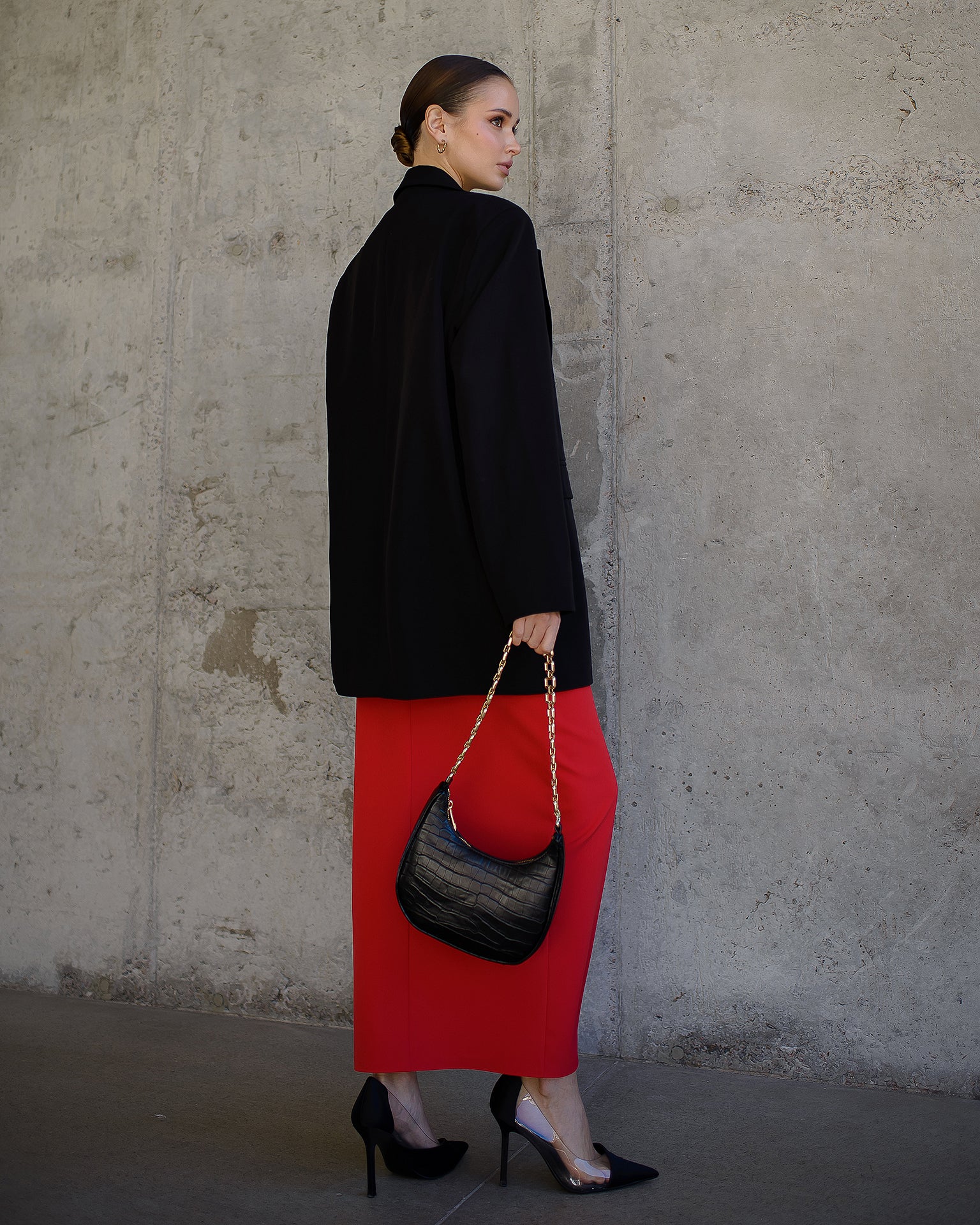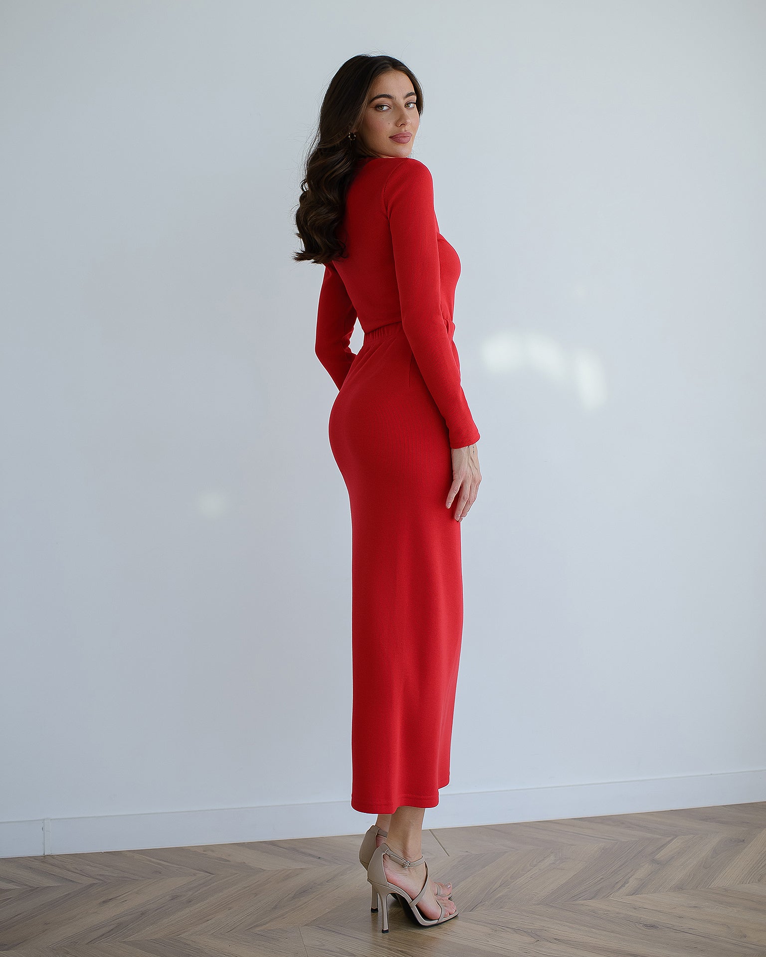 Red High Neck Puff Sleeve Cut-Out Back Midi Dress
