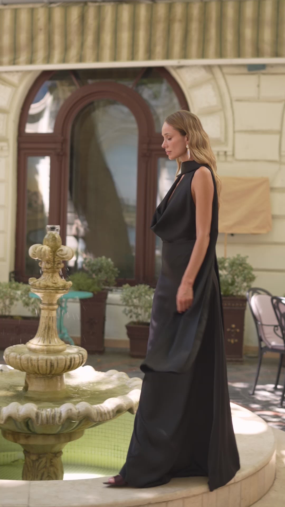 Céline Black Satin Drape Halter-Neck Backless Maxi Dress
