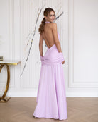Céline Pink Satin Drape Halter-Neck Backless Maxi Dress
