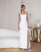 Bella White Sweetheart High-Slit Maxi Dress