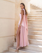 Dusty-Pink Strapless Back Scarf Overskirt Maxi Dress