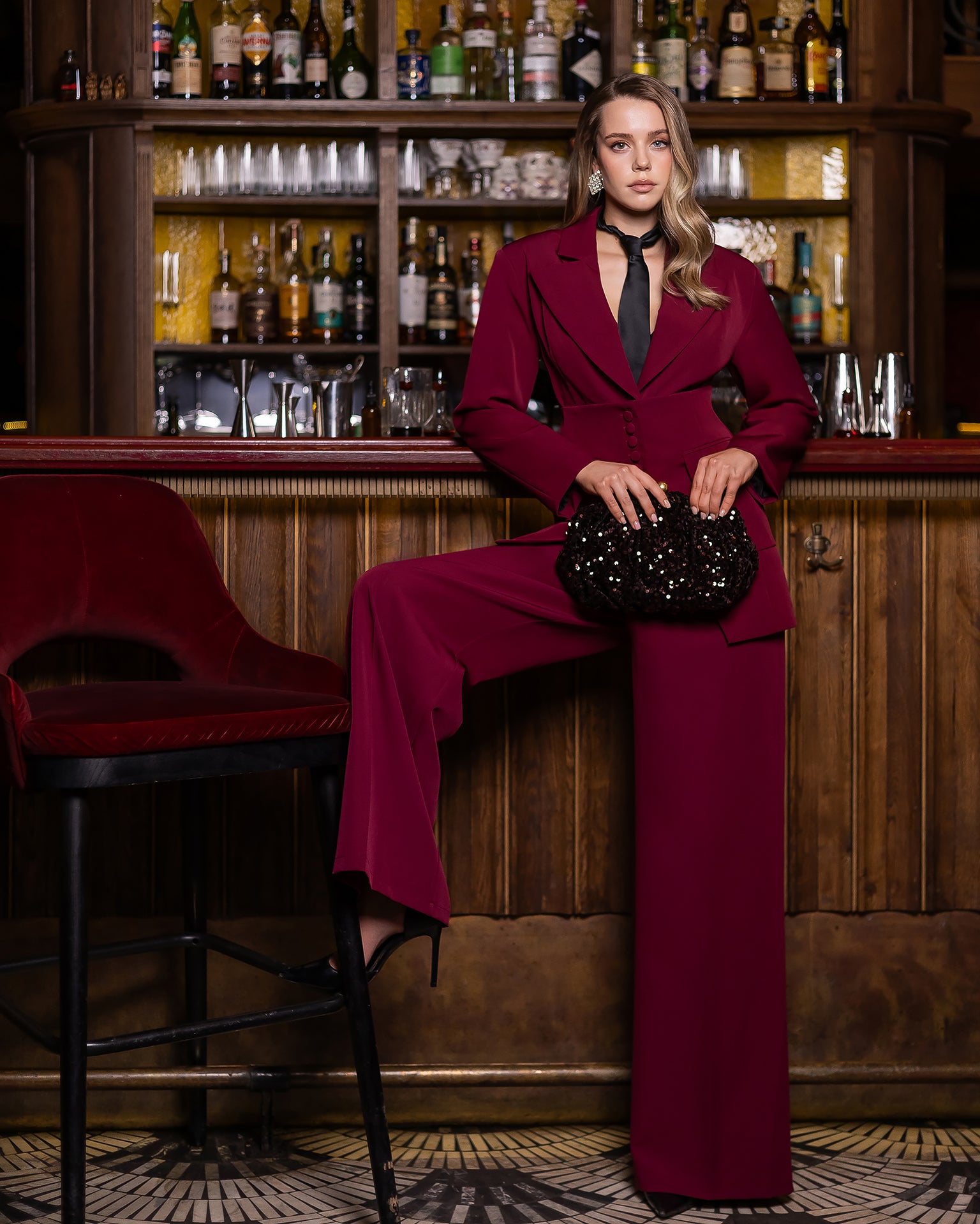 Serena Bordeaux Suede Tailored Blazer & Flared Pants Suit 2-Piece