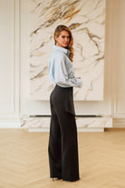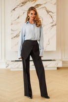 Kaia Black Asymmetric Overlay Straight-Leg Pants