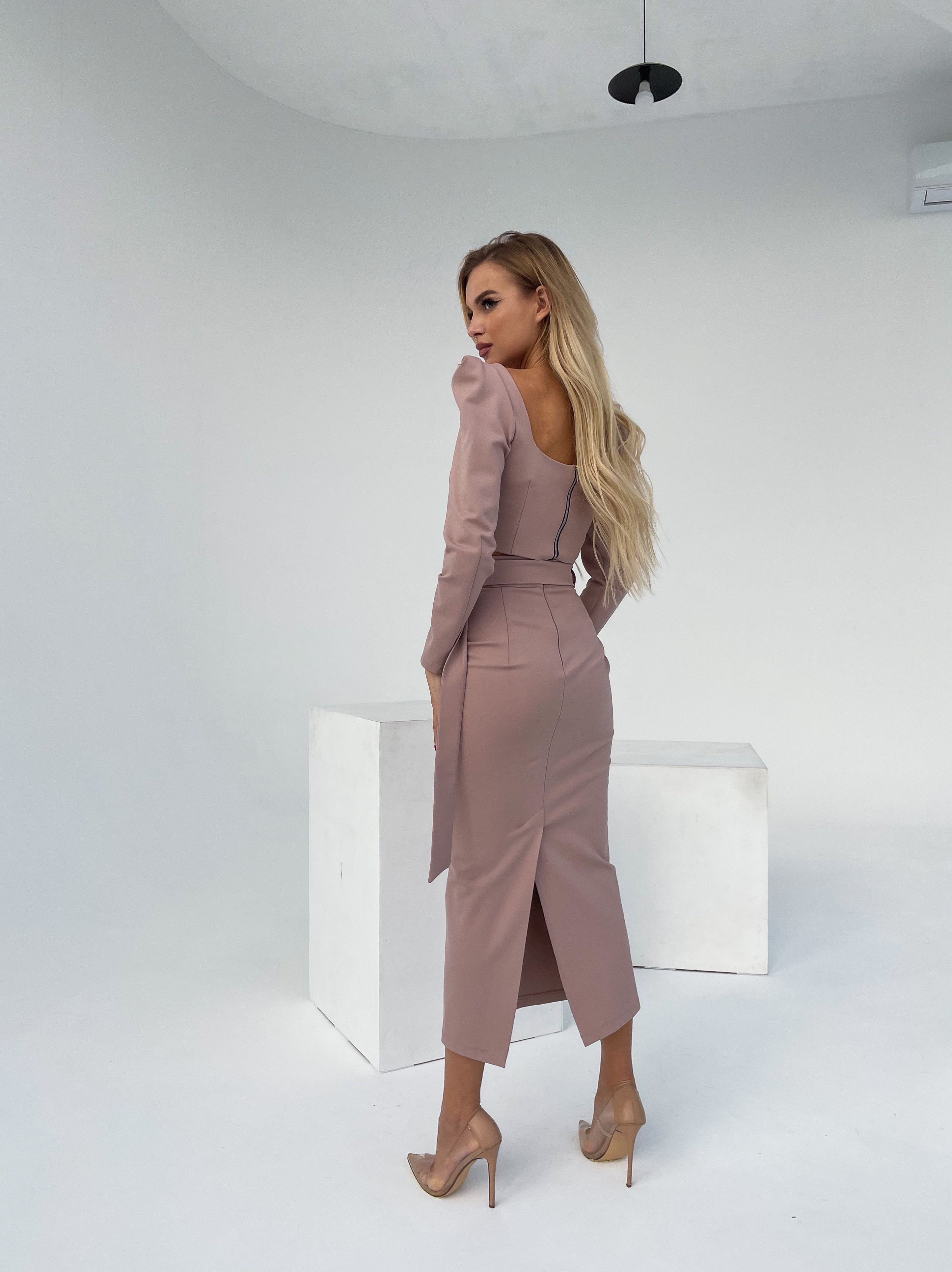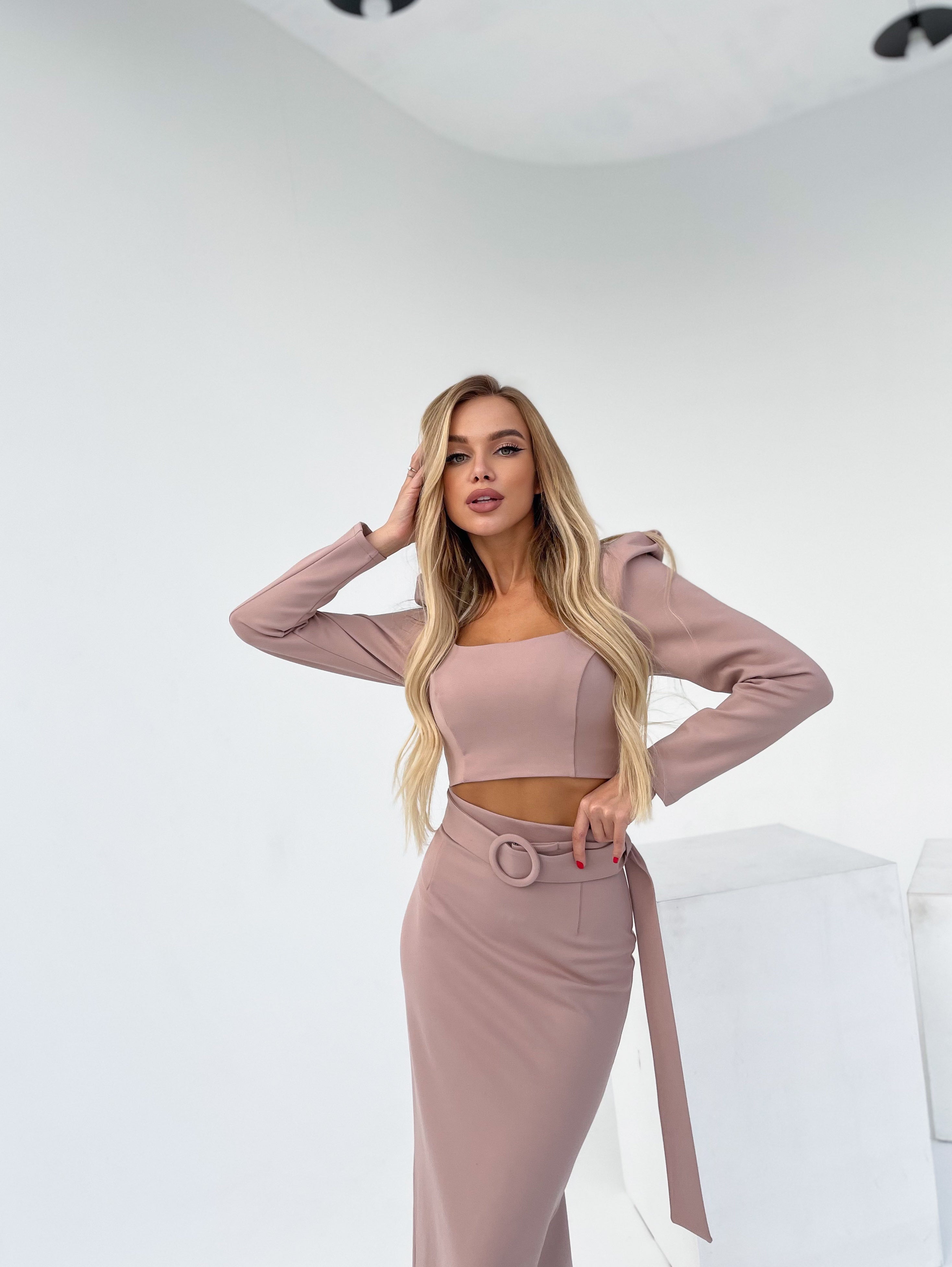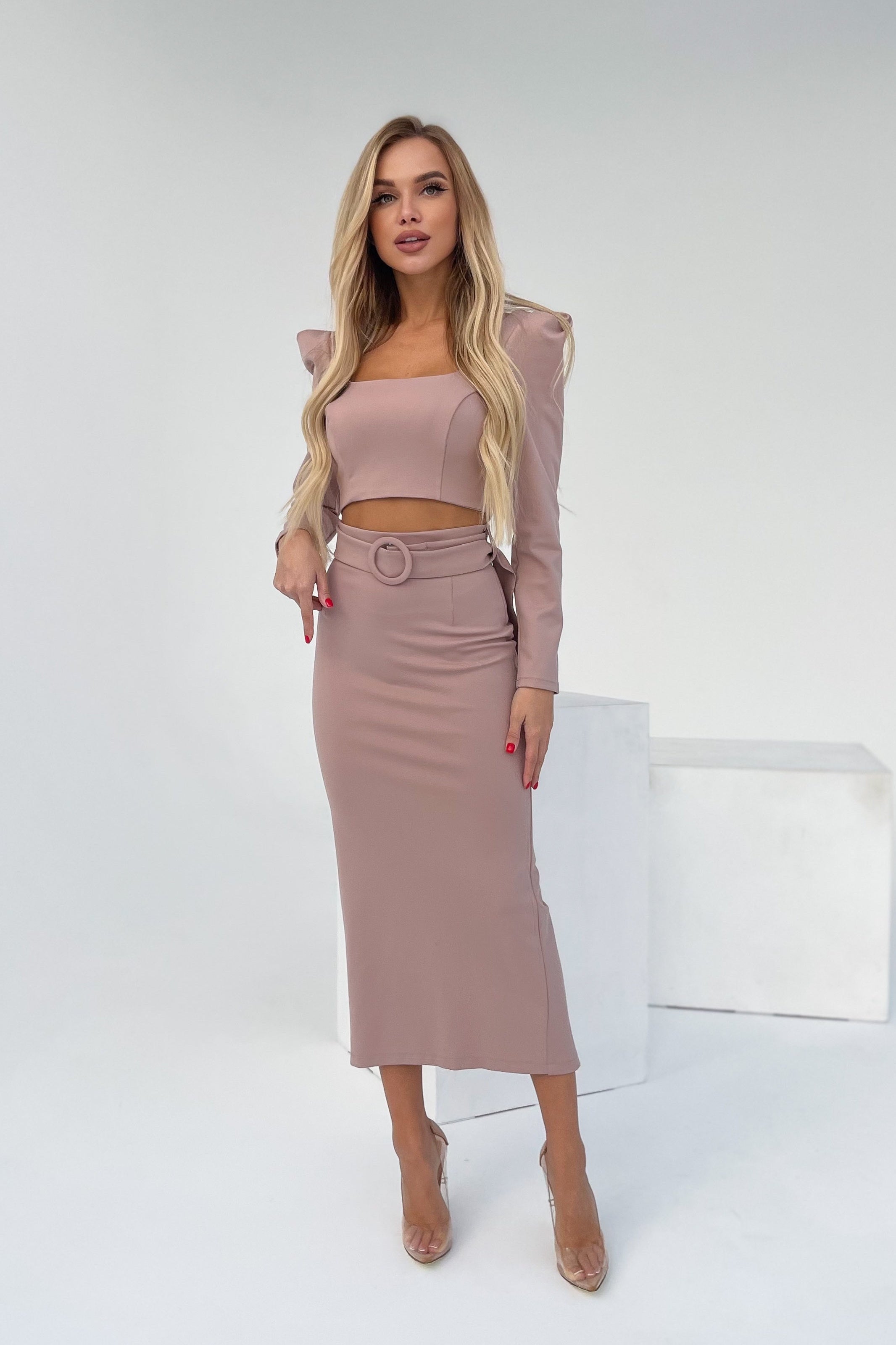 Beige Long Sleeve Top & Maxi Skirt 2-Piece Set