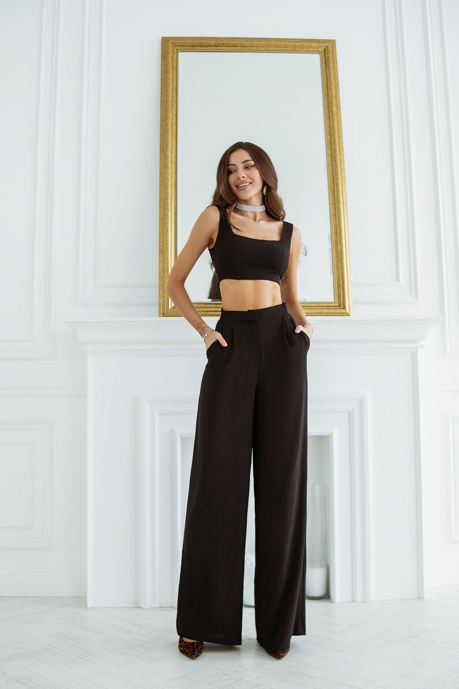 Black Sleeveless Top & Wide-Leg Pants 2-Piece Set