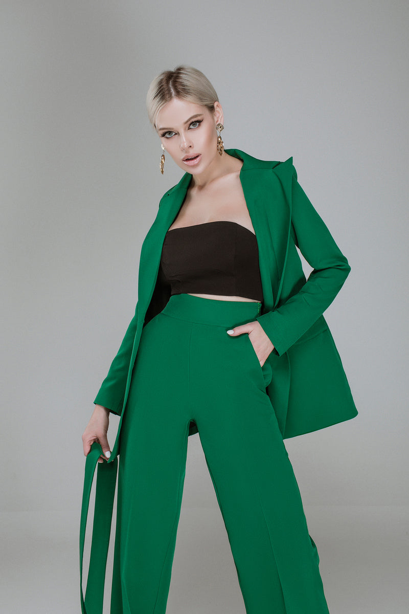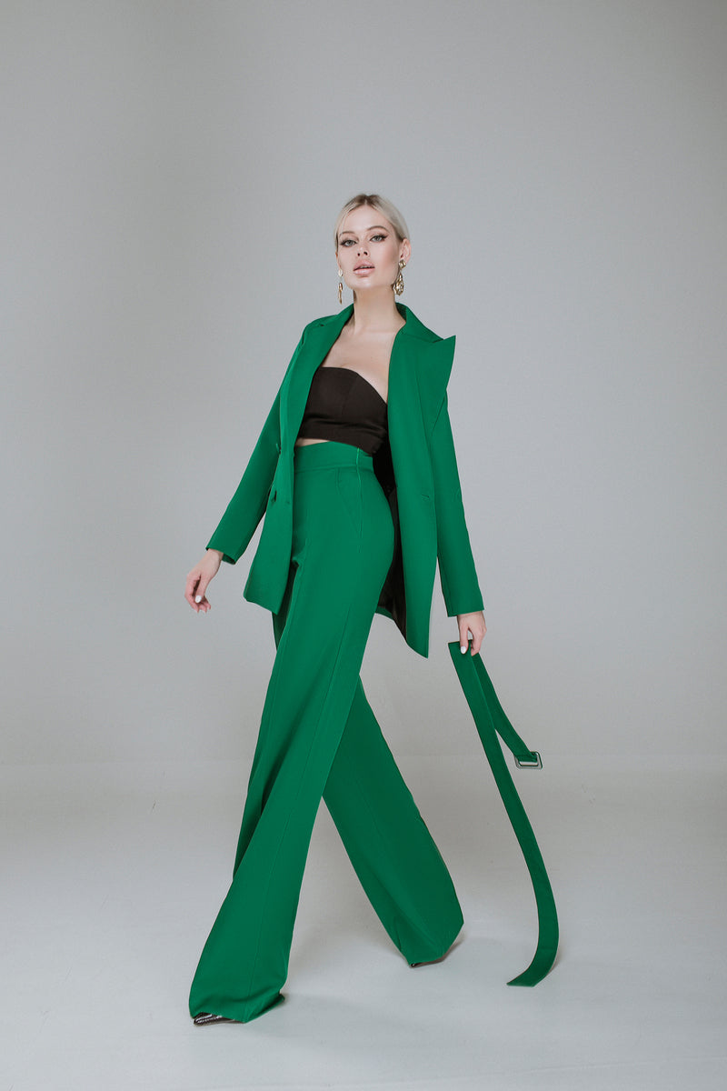 Green Belted Double Breasted Suit 2-Piece
