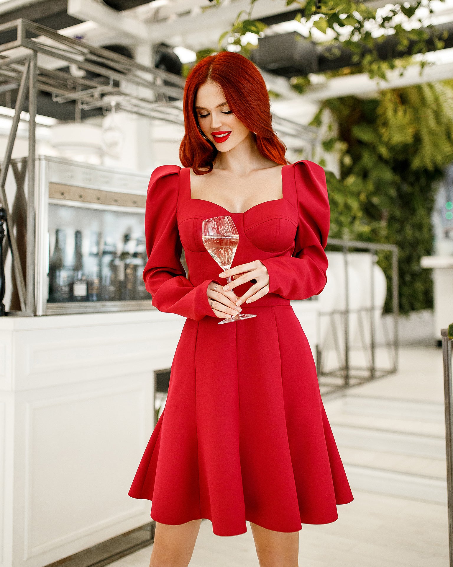 Bordeaux Sweetheart Puff-Sleeve Mini Dress