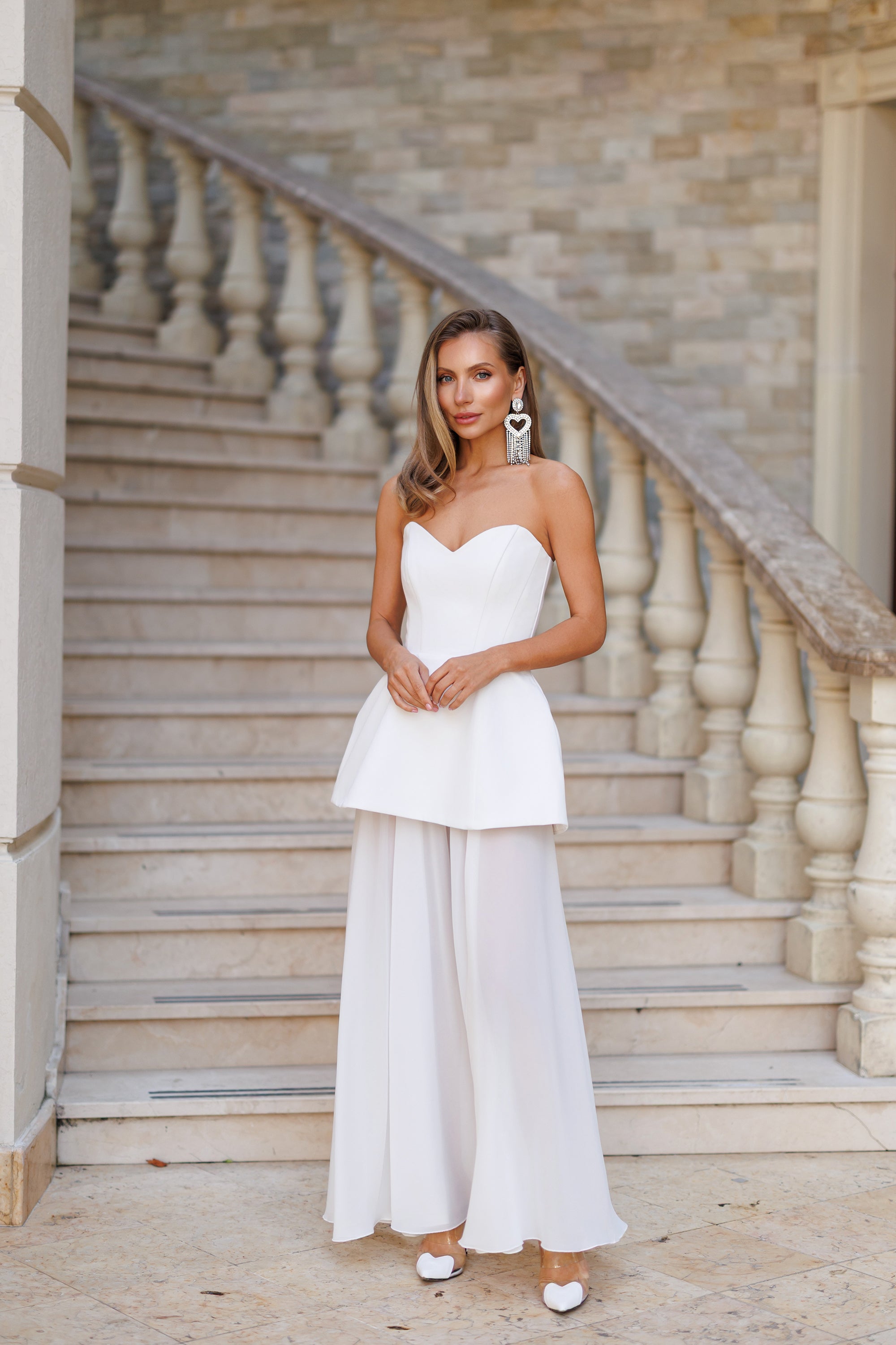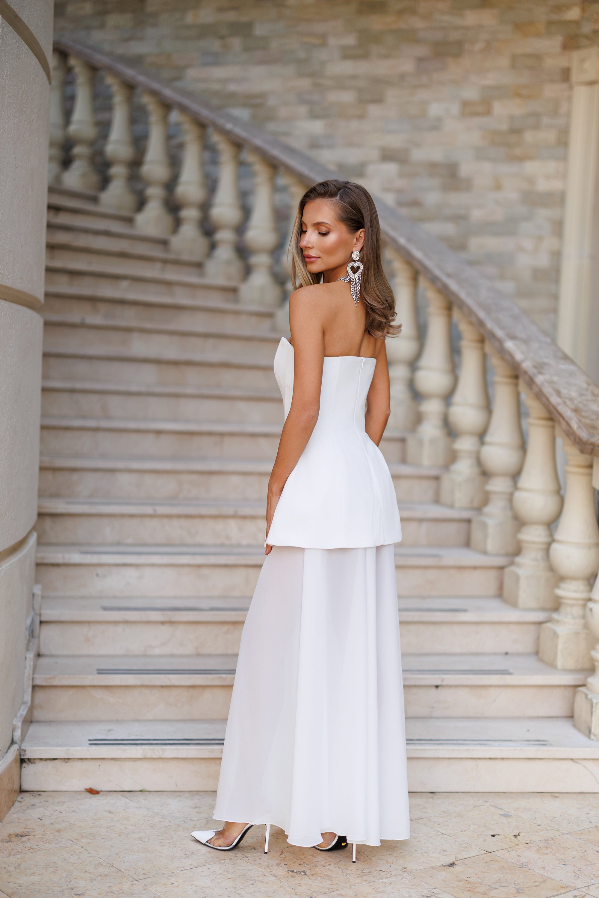 White Strapless Sweetheart Chiffon Skirt Maxi Dress