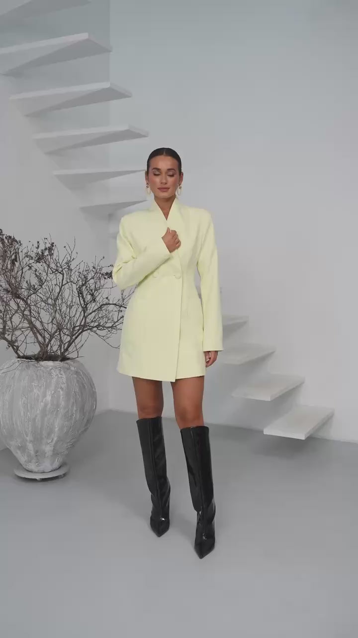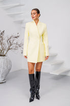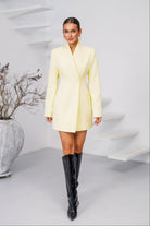Monte Yellow Collarless Double-Breasted Blazer Dress
