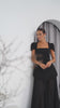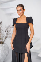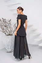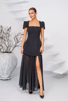 Elara Black Square-Neck Puff-Sleeve Chiffon Maxi Dress