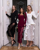 Inès Black Square-Neck Lace-Panel Midi Dress
