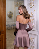 Nova Mocco Satin Off-Shoulder Long-Sleeve Mini Dress